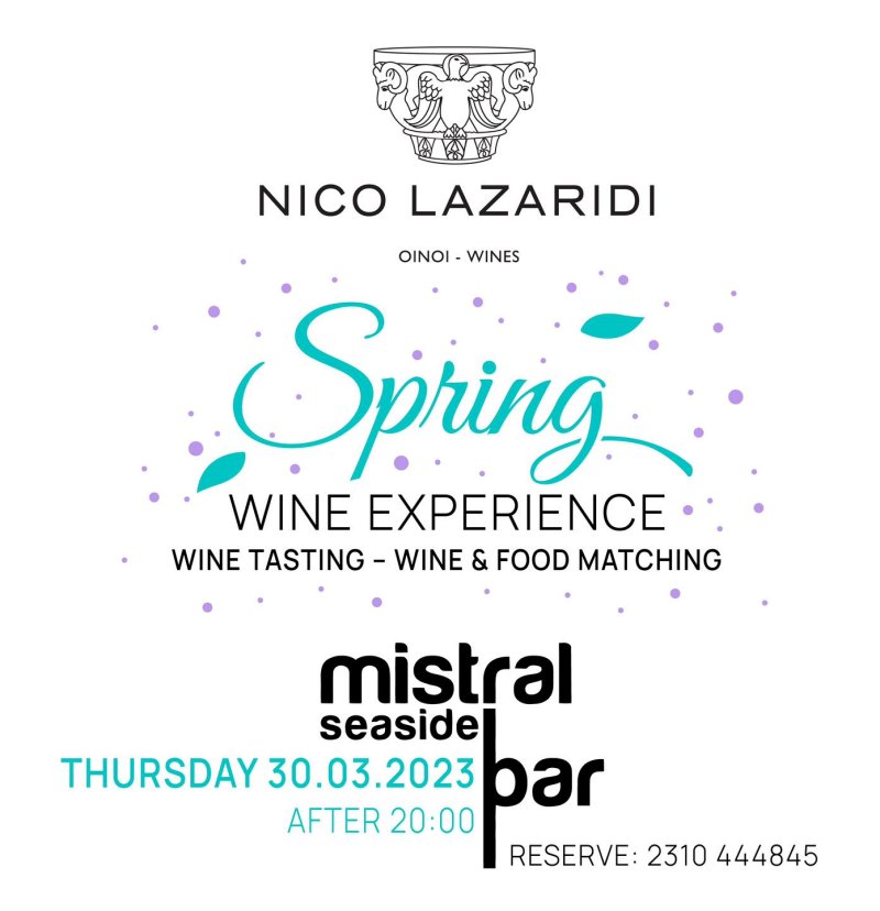 Για μια βραδιά την Πέμπτη 30 Μαρτίου οι οίνοι της NICO LAZARIDI «καταλαμβάνουν» το Mistral Sea Side Bar! Το αγαπημένο meeting place της Θεσσαλονίκης υποδέχεται το εμβληματικό οινοποιείο που εδώ και 35 χρόνια γράφει την ιστορία του ελληνικού κρασιού με σημαία την υψηλή ποιότητα και την αισθητική.