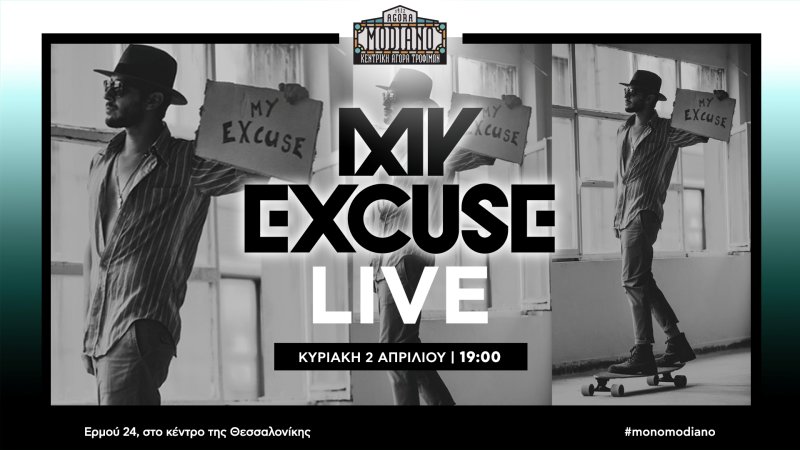 My Excuse live, την Κυριακή 2 Απριλίου από τις 19:00 το απόγευμα, στην Αγορά Μοδιάνο! Με επικεφαλής τον Στέφανο Τριανταφύλλη, οι My Excuse εμφανίστηκαν για πρώτη φορά στο μουσικό προσκήνιο το 2003. Ο αγγλικός στίχος, o συνδυασμός της έντασης της μουσικής τους ταυτότητας και του ξεχωριστού «δεσίματος» που έχουν με το κοινό τους, τους έχουν κάνει ένα από τα πιο αγαπητά σχήματα στη χώρα. Από μικρά venues μέχρι ανοιχτά στάδια, ξέρουν ν’ αφουγκράζονται τον παλμό του κόσμου, δίνοντας παράλληλα πάντα τον καλύτερο μουσικό τους εαυτό.
