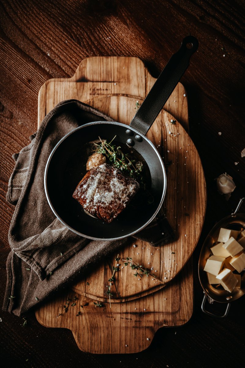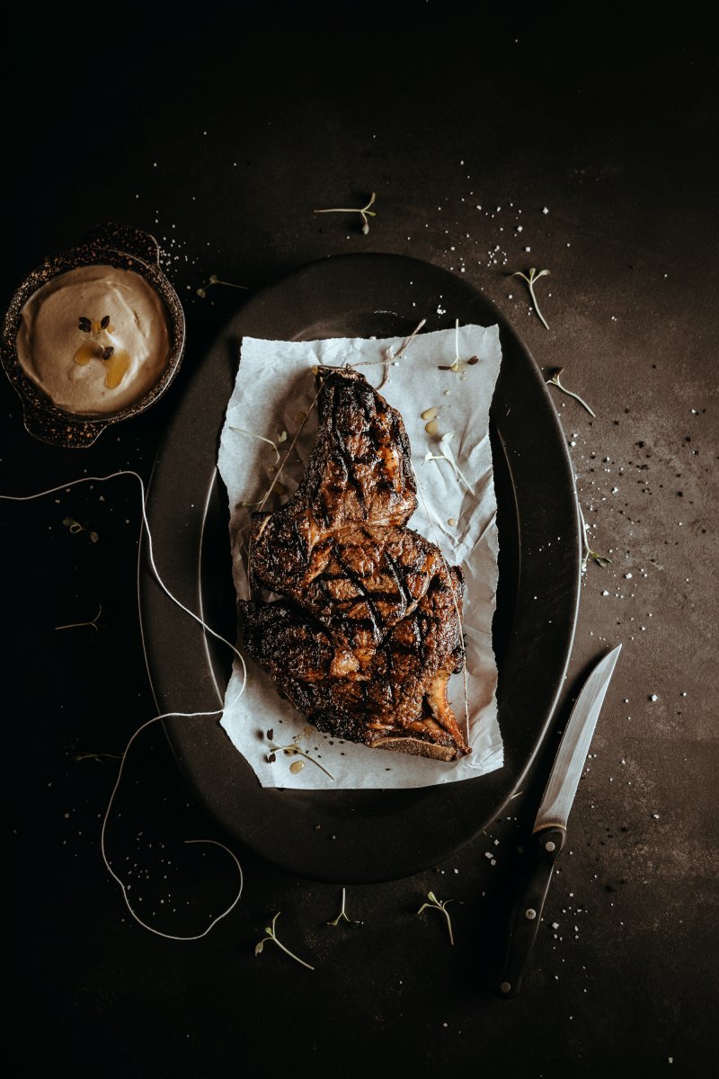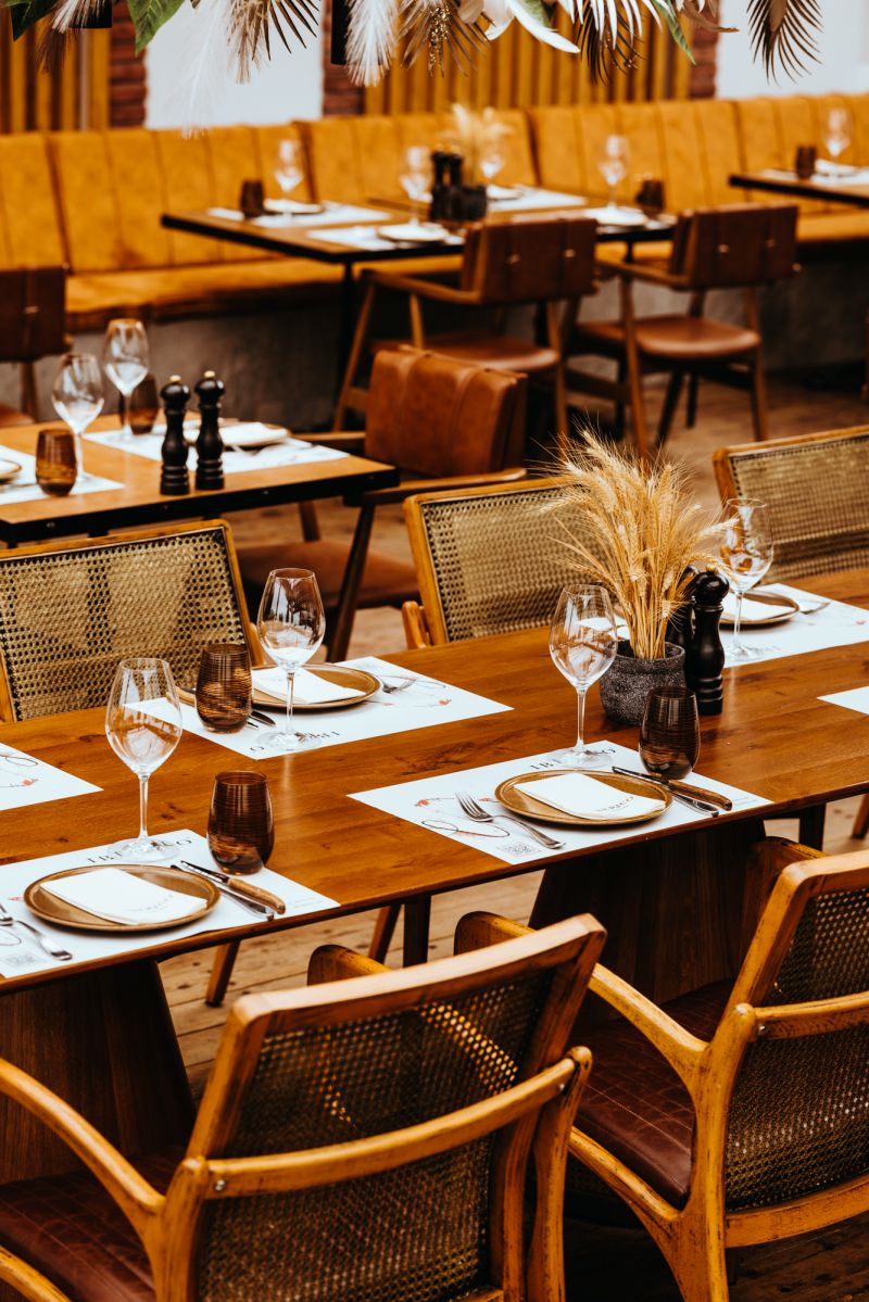 Εδώ, η φιλοσοφία είναι διαχρονική: μέσα από την απλότητα των πιάτων αναδεικνύεται η γνήσια ελληνική γευστική παράδοση μαζί με την ποιότητα της πρώτης ύλης -από κορυφαίες διεθνείς κι ελληνικές φάρμες. Η τοπική κουζίνα συναντά την άρτια κοπή των κρεάτων, που αποτελούν τη βάση του μενού, με τον ξυλόφουρνο να παραμένει σταθερά το επίκεντρο της δράσης. Η καθημερινή παραγωγή σε ζύμες πραγματοποιείται εδώ, όπως και τα μαγειρευτά φαγητά. Επική είναι η κρεατόπιτα και η πίτα γιαουρτιού Iberico, απολαυστικό το καρπάτσιο ταρτάρ από γηγενή μοσχάρια Πιερίας, ενώ οι διάφορες κοπές από ελληνικό ή και διεθνή μόσχο δημιουργούν πιάτα αξιώσεων. Το εγκάρδιο κι έμπειρο προσωπικό είναι πάντα πρόθυμο να σας εξηγήσει τα πάντα για τις κοπές, τις οποίες μπορείτε να ψήσετε παραπάνω, αν το επιθυμείτε, στα ειδικά μαντέμια με τη φωτιά που φέρνουν στο τραπέζι, μια διαδικασία ιδιαίτερα διασκεδαστική.