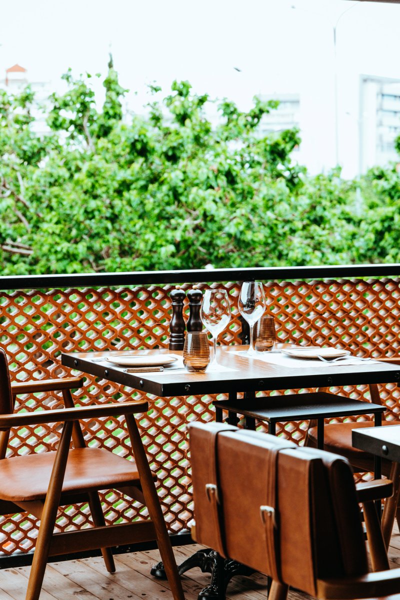 Η αίσθηση της απόλυτης φιλοξενίας σάς αγκαλιάζει από την υποδοχή κιόλας, οδηγώντας σας στην ταράτσα του βιομηχανικού κτιρίου, όπου σας αποκαλύπτεται ένα μαγικό περιβάλλον. Περιτριγυρισμένο από δέντρα και φυτά, το set up είναι ιδανικό για την εποχή, δίνοντας την αίσθηση ότι βρίσκεστε κάπου μακριά από τον χαοτικό αστικό ιστό. Η δροσιά και η ηρεμία μαζί με τη φίνα αισθητική του προστατευμένου roof top έρχεται να προστεθεί στις εκπλήξεις που σας επιφυλάσσει η συνέχεια. Το καλόγουστο design, που κυριαρχεί στο interior του εστιατορίου, συνεχίζεται και στον εξωτερικό χώρο. Το ξύλινο deck, τα μοναστηριακά τραπέζια, ο υποβλητικός φωτισμός -κυρίως τις βραδινές ώρες- και το εντυπωσιακά φωτισμένο μπαρ, δημιουργούν μια μυστηριακή ambience, που πρέπει να βιώσετε οπωσδήποτε.