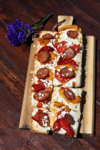 Ωραίες σπιτικές μπρουσκέτες που σε ταξιδεύουν σε αναμνήσεις από την Ιταλία, με δικό τους μοναδικά ζυμωμένο ψωμάκι. Ταρτουφάτα με κρέμα παρμεζάνας, μοτσαρέλα και μαύρη τρούφα, μια άλλη με σπαράγγι και προσούτο χάρμα και μια τρίτη με λαχανικά και λουκάνικο με φέτα να υπερθεματίζει την ωραία εκτέλεση που θυμίζει ιταλικό χωριό.