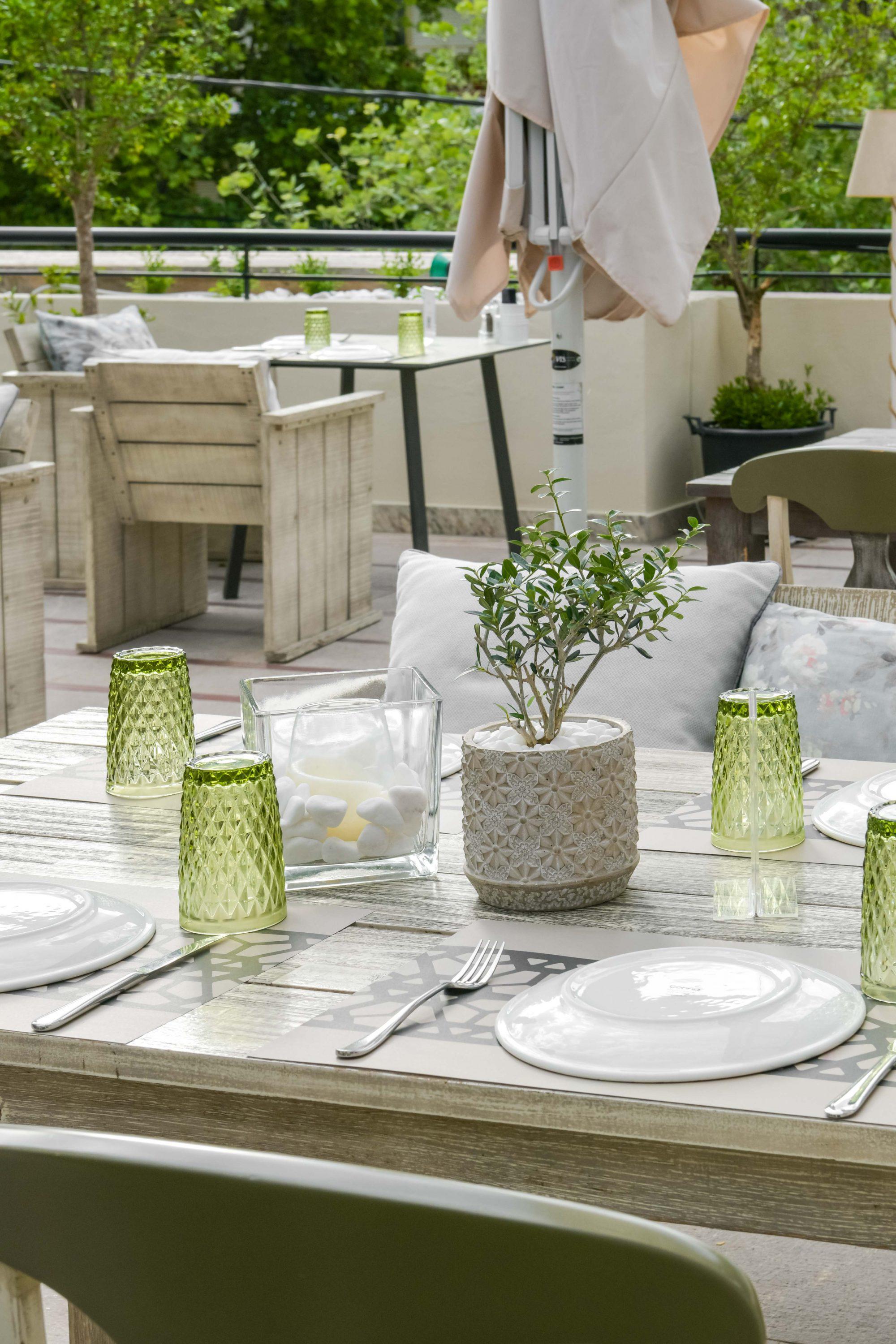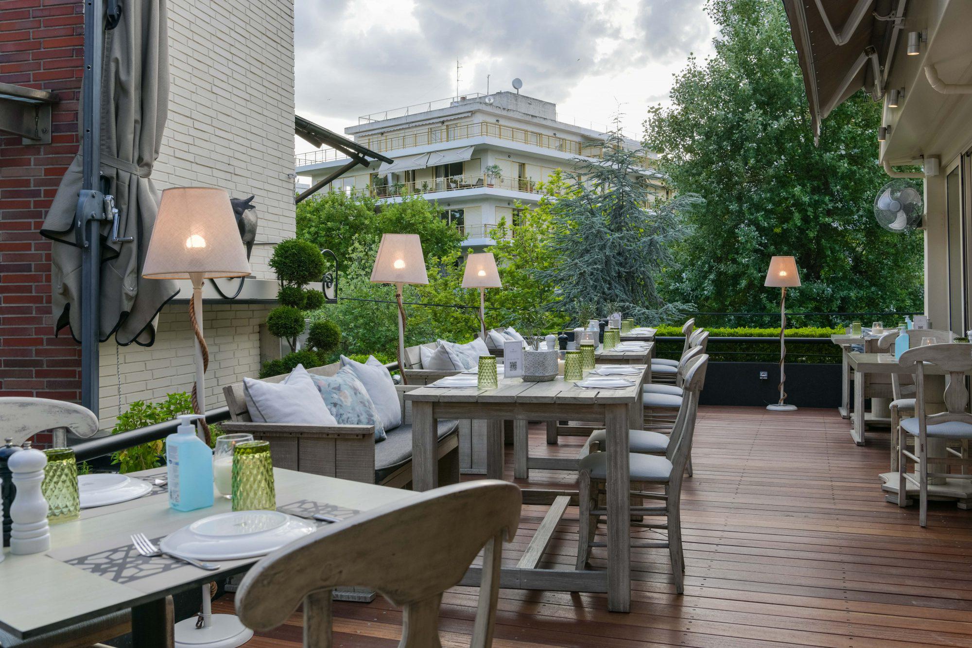 Οι πόρτες του άνοιξαν ξανά για το κοινό, το οποίο εξυπηρετούσε μέσω online πλατφορμών καθόλη τη διάρκεια της καραντίνας, φέρνοντας έναν αέρα ανανέωσης. Πλέον το εστιατόριο διαθέτει δυο μπαλκόνια, διακοσμημένα με την ίδια classy φιλοσοφία που αγαπάμε πολύ. Η θέα της καταπράσινης Σοφούλη το βράδυ γίνεται ακόμα πιο μαγευτική, ενώ το ένα μπαλκόνι αντικρίζει το άλλο, εν μέσω διακοσμητικών και αρωματικών φυτών.