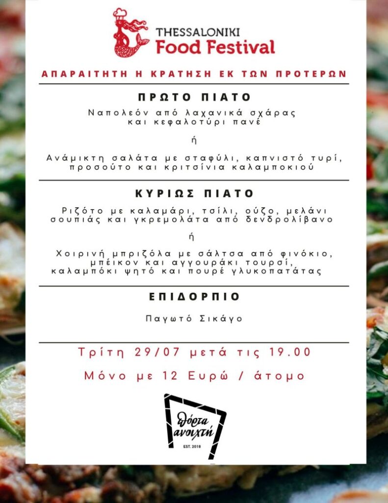 Λίγο πριν φύγουμε για διακοπές, μια τελευταία απόλαυση! Πού; Μα φυσικά Thessaloniki Food Festival στον Κήπο. Το μενού αυτής της Τρίτης είναι έτοιμο, για να το απολαύσεις μόνο με 12 Ευρώ το άτομο! Εσύ θα το χάσεις; Μην ξεχάσεις να κάνεις την κράτησή σου για να το εξασφαλίσεις
