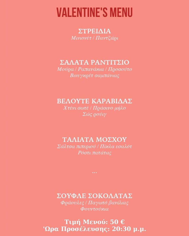 Μενού Αγίου Βαλεντίνου στο Tzaki Ho