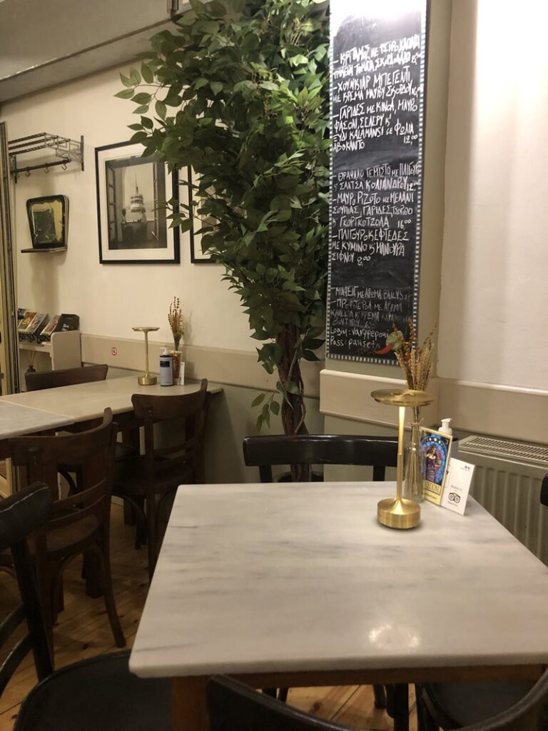 Place Το κατάστημα στα Άνω Λαδάδικα είναι ιστορικό, γωνιακό και αναλλοίωτο στον χρόνο. Αυτό που εντυπωσιάζει στον εσωτερικό διάκοσμο, με τα πολλά ξύλινα καφασωτά, είναι ότι έχουν διατηρήσει το αρχικό πλακάκι και το πρώτο εμφανές τούβλο από το αρχικό μαγαζί, που λειτούργησε ως μπακάλικο πριν από 70 χρόνια!