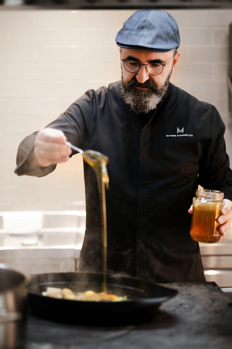 Μέσα στις κουζίνες σιγοβράζουν κατσαρόλες και πάνω τους ο μεγαλύτερος μάγος της κουζίνας της πόλης, ο εμπνευσμένος executive chef, Σωτήρης Ευαγγέλου, -μαζί με την ομάδα του- ακονίζει τα μαχαίρια του, ζεσταίνει τους φούρνους, κάνει δοκιμές, προετοιμάζει το μενού, τον μπουφέ. Σβήνει, γράφει, προσθέτει, διαμορφώνει τη γευστική πανδαισία που θα ακολουθήσει αυτή τη γιορταστική περίοδο. Σε τραπέζια που θα στρωθούν και θα σου θυμίσουν τις πιο εντυπωσιακές σκηνές από ταινίες. Γύρω σου ευτυχισμένα πρόσωπα, χαμογελαστά και άνθρωποι εκπαιδευμένοι εξαιρετικά, να ικανοποιήσουν με ευγένεια και προνοητικότητα κάθε σου επιθυμία.