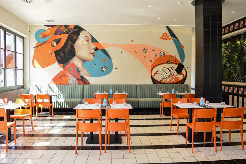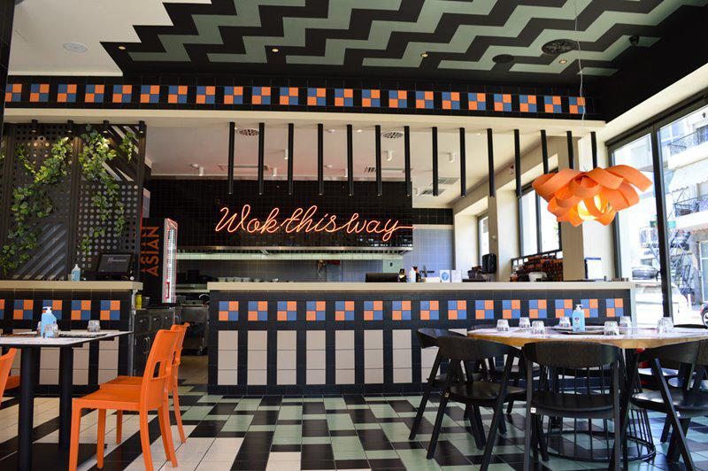 Το αρχιτεκτονικό γραφείο Opsis Architects υπέγραψε την αισθητική και στο τέταρτο μαγαζί της αλυσίδας, δημιουργώντας ένα μοντέρνο, μίνιμαλ χώρο στο εσωτερικό, με το λευκό, το πορτοκαλί και τις asian εικόνες να πρωταγωνιστούν, και τον ευχάριστο προστατευμένο κήπο, με πρόβλεψη να υποδέχεται τον κόσμο το ίδιο άνετα χειμώνα-καλοκαίρι, ενώ η κεντρική neon επιγραφή “Wok this Way” σε υποδέχεται σ’ ένα σύμπαν γεύσεων, αρωμάτων και χρωμάτων, όλα με σκοπό την τέρψη του ουρανίσκου και όχι μόνο.