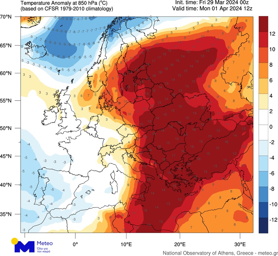 «Σαν πρωταπριλιάτικο αστείο…», τιτλοφορείται σημερινή ανάρτηση του διευθυντή ερευνών του Αστεροσκοπείου της Αθήνας, Κώστα Λαγουβάρδου, στην οποία περιλαμβάνονται χάρτες που παρουσιάζουν ακραίες αποκλίσεις της θερμοκρασίας.