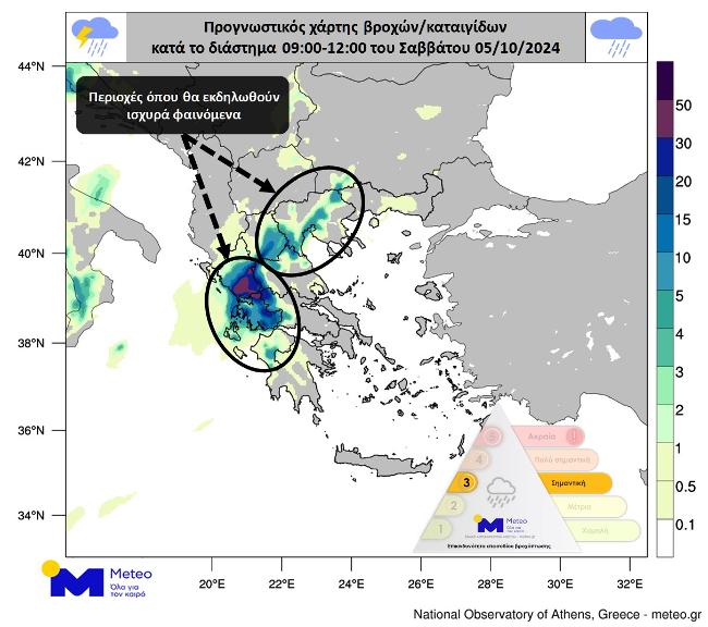 Γ. Μέχρι το μεσημέρι του Σαββάτου 05/10, τα φαινόμενα στα δυτικά θα επιμείνουν και θα επεκταθούν σε περιοχές της κεντρικής και βόρειας χώρας.