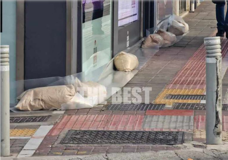 Πάτρα: Μαγαζάτορες βάζουν τσουβάλια με άμμο για να «οχυρωθούν» από την κακοκαιρία