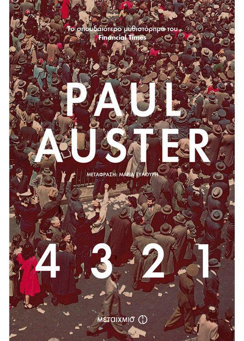 Στο ογκωδέστατο μυθιστόρημά του «4 3 2 1» ο Πολ Όστερ μάς δίνει τέσσερις δαφορετικές εκδοχές για τον βίο και την πολιτεία του Άρτι Φέργκιουσον, ο οποίος αποτελεί κατά πάσα πιθανότητα λογοτεχνική του περσόνα. Πίσω από το οικογενειακό περιβάλλον, το οποίο κυριαρχεί στη ζωή του ήρωα, θα διακρίνουμε την ταραχώδη πολιτική ζωή της σύγχρονης Αμερικής, καθώς και τον τρόπο με τον οποίο επηρεάζουν οι εξωτερικές συνθήκες όχι μόνο την καθημερινότητα του ατόμου, αλλά και τον συνειδησιακό του κόσμο.