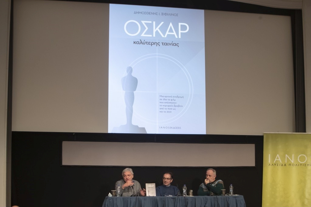 Αμέσως μετά, ο Βασίλης Κεχαγιάς εξέφρασε τον ενθουσιασμό του για την έκδοση αυτή και συνεχάρη τον εκδότη του Ιανού, Νίκο Καρατζά. «Η έκδοση αυτή αποτελεί μια καταγραφή των 93 ταινιών που κέρδισαν το Όσκαρ Καλύτερης Ταινίας από την ίδρυση του θεσμού, το 1929, έως και το Nomadland του 2021. «Πρόκειται για την πιο εμπεριστατωμένη τοποθέτηση απέναντι στα Όσκαρ. Ο Δημοσθένης, εν μέσω πανδημίας, σαν μέρμηγκας συνέλεγε πληροφορίες. Η έκδοση αυτή είναι ένα μήνυμα ζωής για το κινηματογραφικό βιβλίο. Τα τελευταία χρόνια, ο χυλός του διαδικτύου καταστρέφει όχι μόνο την κινηματογραφική κριτική, αλλά έχει εξοβελίσει και τις εκδόσεις από το προσκήνιο», ανέφερε χαρακτηριστικά, πριν δώσει τον λόγο στον Δημοσθένη Ξιφιλίνο.