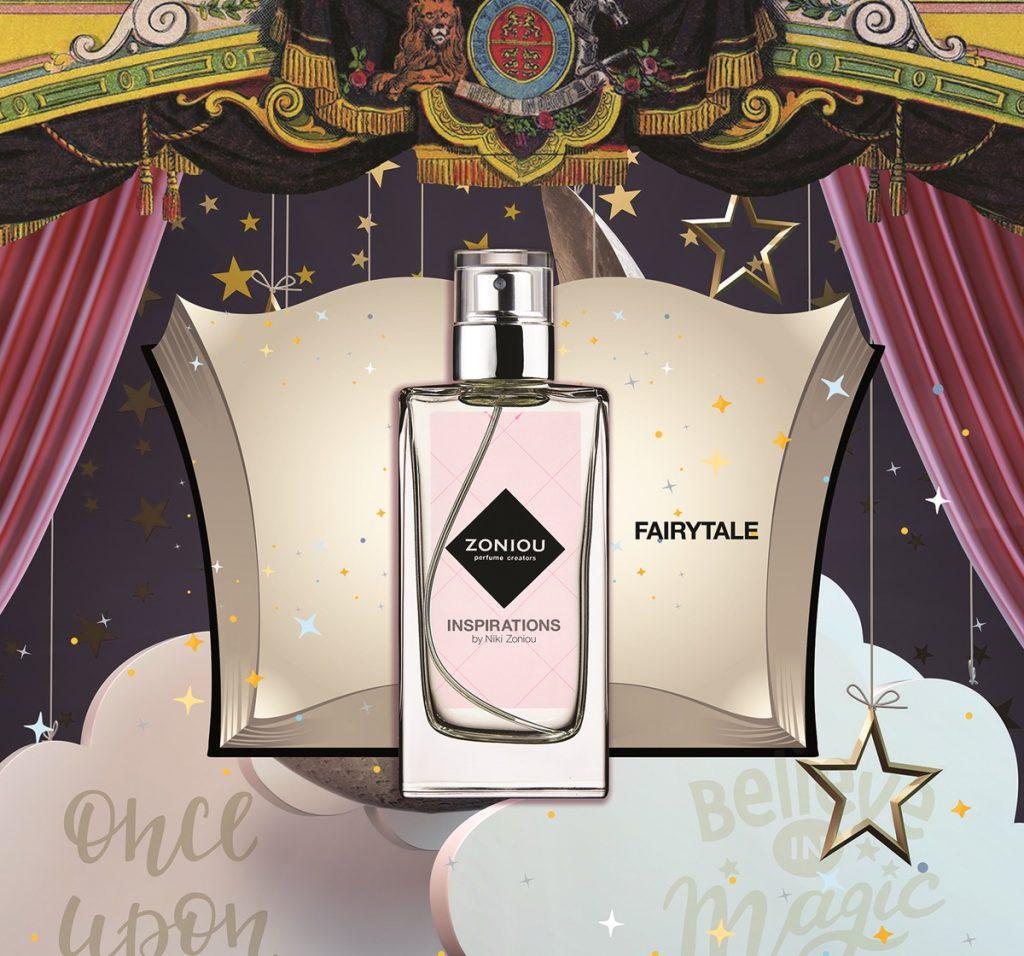 Το Fairytale, το νέο άρωμα της σειράς Inspirations της Νίκης Ζώνιου, περιέχει αρωματικές νότες εμπνευσμένες από τους αγαπημένους ήρωες των παιδικών της χρόνων. Άσπρα λουλούδια, αγνά σα τη Χιονάτη. Πούδρα από τη φινέτσα της Σταχτοπούτας. Πικάντικο κίτρο του σκανταλιάρη Πήτερ Παν. Γιασεμί από την εξωτική Jasmin. Ανθισμένη παιώνια, όμορφη σαν την Ωραία Κοιμωμένη. Άγριος κέδρος από τη ζούγκλα του Μόγλη. Μαγευτικά φρούτα από την Αλίκη στη Χώρα των Θαυμάτων. Και όλα αυτά σε ένα άρωμα στη Zoniou (Μητροπολίτου Ιωσήφ 17 και Βίκτωρος Ουγκώ 9 /2310 251 925, 2310 518 450 και στο www.zoniou.gr).