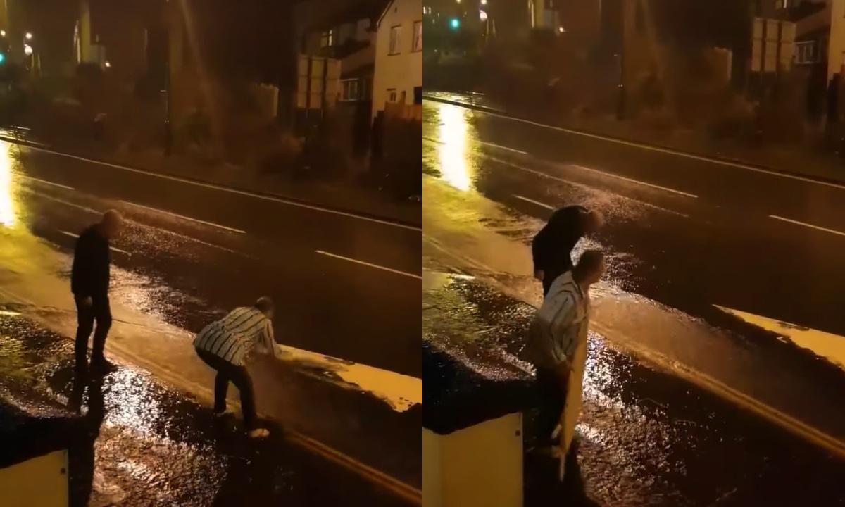 Μπορεί να ακούγεται σουρεάλ αλλά για κάποιους ισχύει αυτό το σενάριο. Ένα ζευγάρι εν μέσω κακοκαιρίας αποφάσισε να κάνει σέρφινγκ στα λιμνάζοντα νερά του δρόμου.