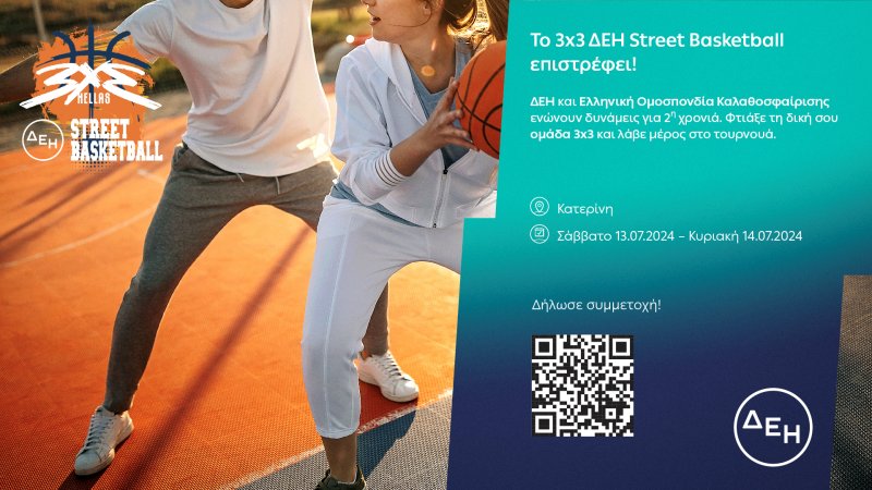 Το ίδιο αναμένεται και στην Κατερίνη, όπου ομάδες όλων των ηλικιών θα ζήσουν στον ρυθμό του τουρνουά που διοργανώνεται από την Ελληνική Ομοσπονδία Καλαθοσφαίρισης και τη ΔΕΗ, για 2η συνεχή χρονιά. Ξεκινώντας από τη Λαμία τον Απρίλιο του 2024, το 3×3 ΔΕΗ Street Basketball ταξίδεψε σε Άργος, Μεσολόγγι, Λάρισα, Τρίπολη και ολοκληρώνεται για φέτος με το 6ο και τελευταίο τουρνουά στην Κατερίνη. 55 ομάδες, από Ελλάδα, αλλά και από Βόρειο Μακεδονία, Βουλγαρία και Σερβία έχουν δηλώσει συμμετοχή στο τουρνουά της Κατερίνης και θα διαγωνιστούν στις κατηγορίες U14 Men, U16 Men, U18 Men, +18 Men, +18 Women.