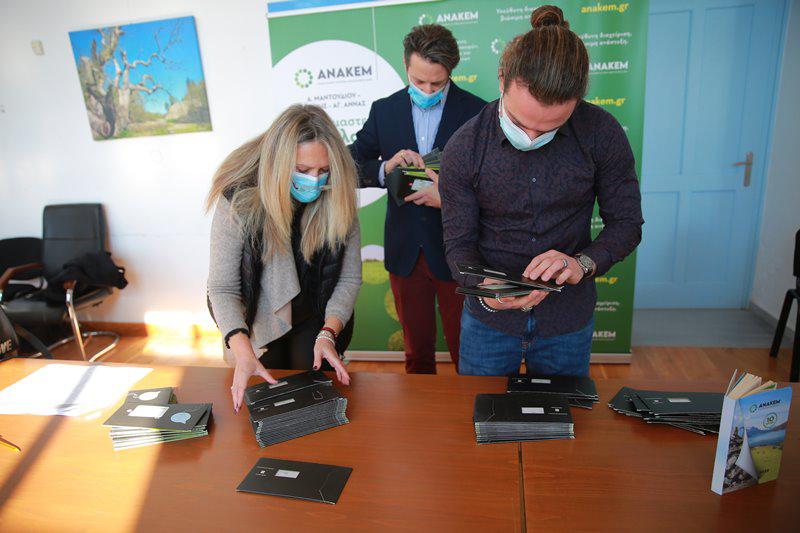 Η παράδοση αυτών των προπληρωμένων καρτών στις 121 πυρόπληκτες οικογένειες έγινε την περασμένη Παρασκευή 17 Δεκεμβρίου, στο πλαίσιο μιας λιτής τελετής, στην αίθουσα Δημοτικού Συμβουλίου, στην Λίμνη Ευβοίας. Τις προπληρωμένες κάρτες παρέλαβαν εκπρόσωποι αυτών των οικογενειών οι οποίοι εξέφρασαν τις θερμές ευχαριστίες τους προς τους εκπροσώπους της ΑΝΑΚΕΜ Α.Ε., γι’ αυτή τους τη στήριξη, λέγοντας πως η οικονομική αυτή ενίσχυση αποτελεί μια μικρή ανάσα ενόψει των εορτών.