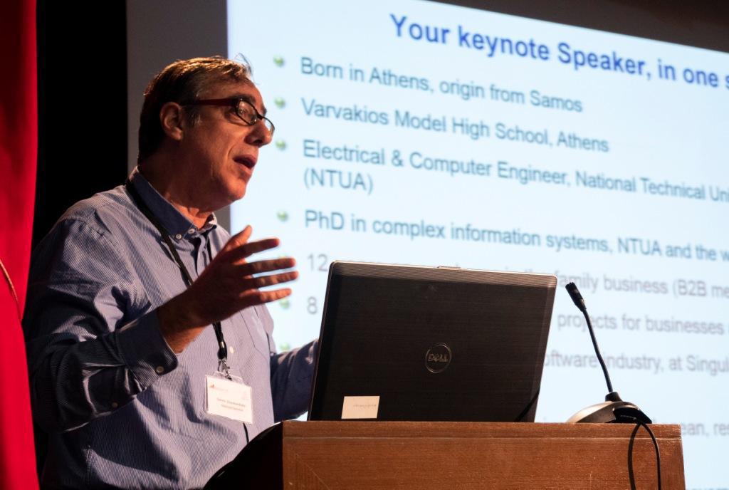 Ακολούθησε ο Δρ. Γιάννης Χαραλαμπίδης, Αναπληρωτής Καθηγητής του Τμήματος Μηχανικών Πληροφοριακών και Επικοινωνιακών Συστημάτων του Πανεπιστημίου Αιγαίου και Επικεφαλής του Κέντρου Έρευνας για την Ψηφιακή Διακυβέρνηση. Πρόκειται για τον Έλληνα που βρίσκεται στη λίστα των 100 ανθρώπων με τη μεγαλύτερη επιρροή στην παγκόσμια Ψηφιακή Διακυβέρνηση. Ο Δρ. Χαραλαμπίδης μίλησε για την ανάγκη και τη σημασία της Ψηφιακής Διακυβέρνησης καταλήγοντας στους πέντε στόχους της: «Ένα κράτος χωρίς χαρτί, συνδεδεμένο και προδραστικό. Ένα κράτος έξυπνο, το οποίο θα παρέχει υπηρεσίες σε κεντρικό και τοπικό επίπεδο που ενσωματώνουν τεχνολογίες αιχμής. Ένα κράτος ανοιχτό και αξιόπιστο, που συλλέγει, αξιοποιεί και διαθέτει όλα τα δεδομένα του ανοιχτά. Ένα κράτος που μπορεί να αλλάζει και να καινοτομεί. Τέλος, ένα κράτος που σε καλύπτει και σε έλκει να συνεργαστείς, προάγοντας τις ανοιχτές συνεργατικές δράσεις, με την εμπλοκή πολιτών και επιχειρήσεων από τα αρχικά κιόλας στάδια».