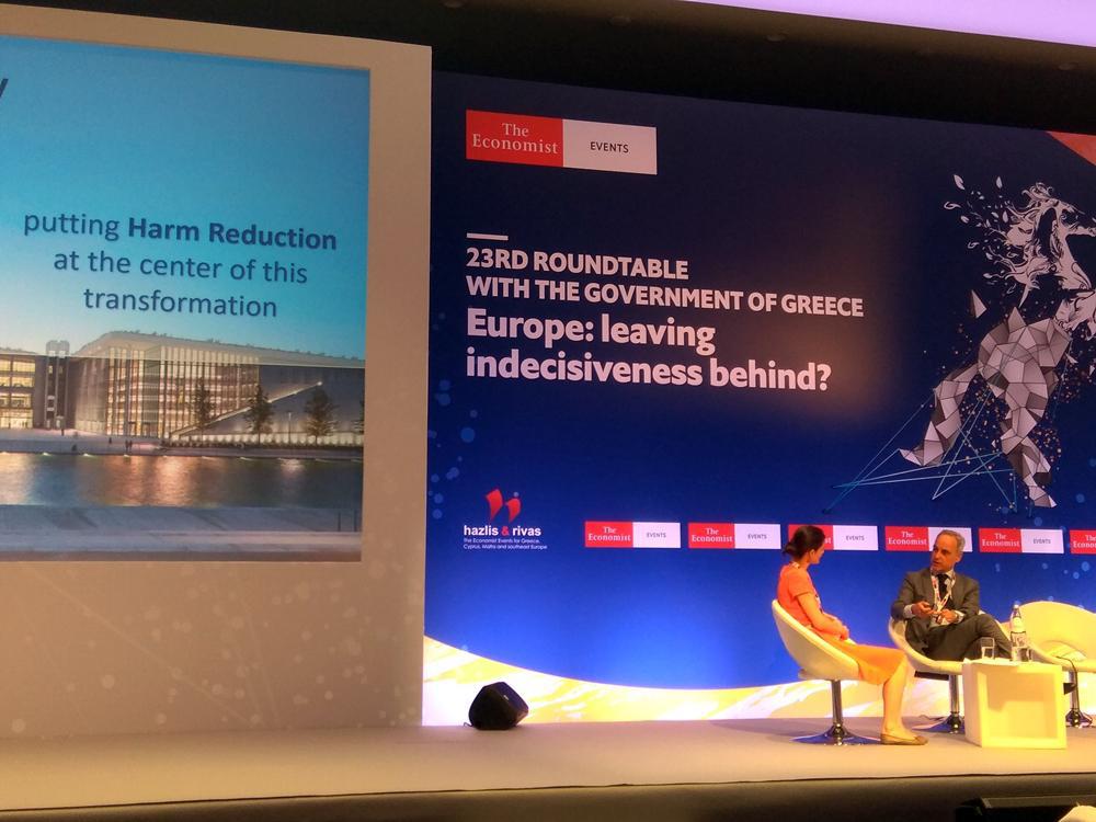 Ο μετασχηματισμός της British American Tobacco στην Ελλάδα και τα σημαντικά οφέλη που έφερε στην ελληνική οικονομία, στην απασχόληση και στην ελληνική κοινωνία, αποτελεί ένα απτό παράδειγμα πως μπορεί να επιτευχθεί το όραμα ανάπτυξης της χώρας και πώς οι επιχειρήσεις μπορούν να συμβάλλουν σε αυτό, τονίστηκε στο Συνέδριο του Economist που πραγματοποιείται στο Λαγονήσι, με παρουσία σημαντικών προσωπικοτήτων από όλο τον κόσμο.