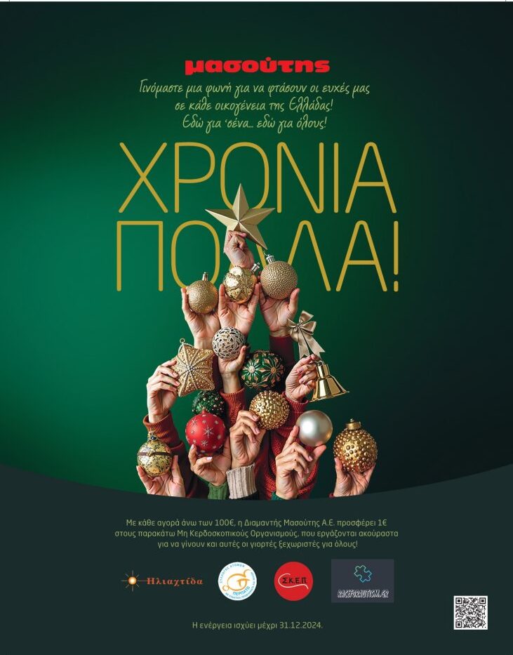 Η Διαμαντής Μασούτης Α.Ε. για μια ακόμη χρονιά πραγματοποίησε στις γιορτές μια σημαντική δράση κάνοντας πράξη την αλληλεγγύη. Μέσα από μία συλλογική προσπάθεια συγκεντρώθηκαν 40.000 ευρώ τα οποία διατέθηκαν για την ενίσχυση δομών που υποστηρίζουν άτομα με αναπηρία ή γενετική διαταραχή. Συγκεκριμένα, κάθε μία από τις παρακάτω δομές έλαβε 10.000 ευρώ: