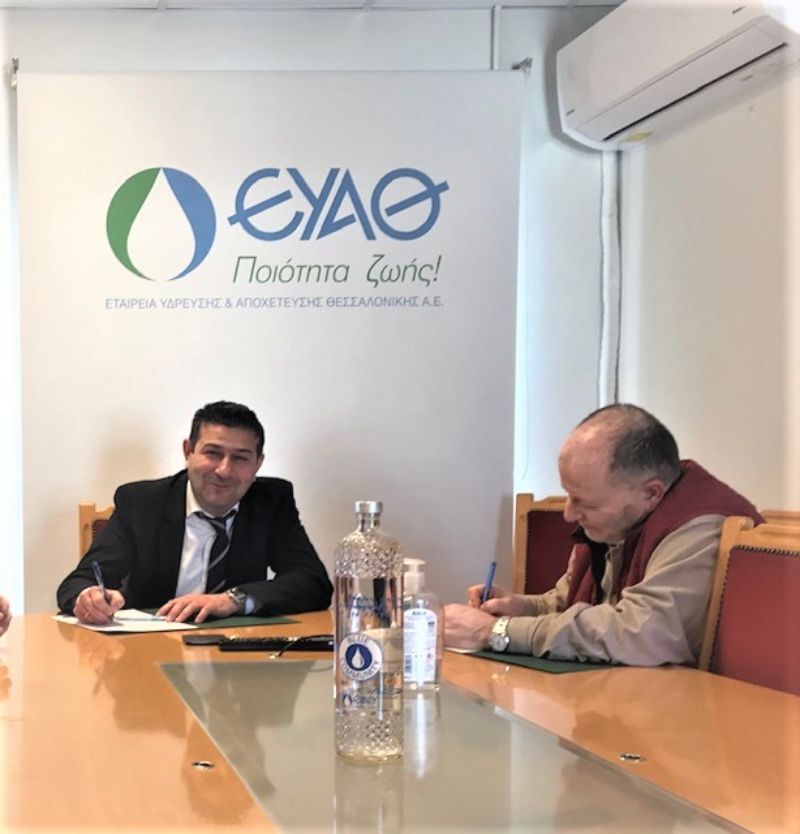 Επεμβάσεις ενεργειακής εξοικονόμησης και περιβαλλοντικής αναβάθμισης της Εγκατάστασης Επεξεργασίας Λυμάτων (ΕΕΛ) «Αίνεια», στη Μηχανιώνα, περιλαμβάνει η νέα πενταετής σύμβαση που υπογράφηκε στα κεντρικά γραφεία της ΕΥΑΘ, στην Τσιμισκή.