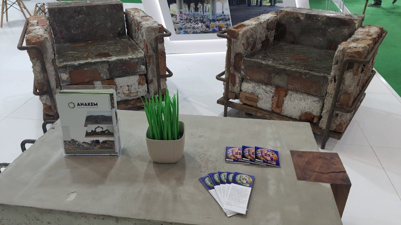 Στο περίπτερο της ΑΝΑΚΕΜ εκτίθεται για πρώτη φορά στην Ελλάδα έργο του εικαστικού καλλιτέχνη κ. Νικόλαου Σαρίδη, φιλοτεχνημένο αποκλειστικά από απόβλητα κατεδαφίσεων, όπως κεραμικά, σίδερα και σκυρόδεμα, το οποίο δημιουργήθηκε έπειτα από παραγγελία της ΑΝΑΚΕΜ ώστε να προωθηθεί η έννοια της επαναχρησιμοποίησης και της επεξεργασίας – αξιοποίησης των αποβλήτων.