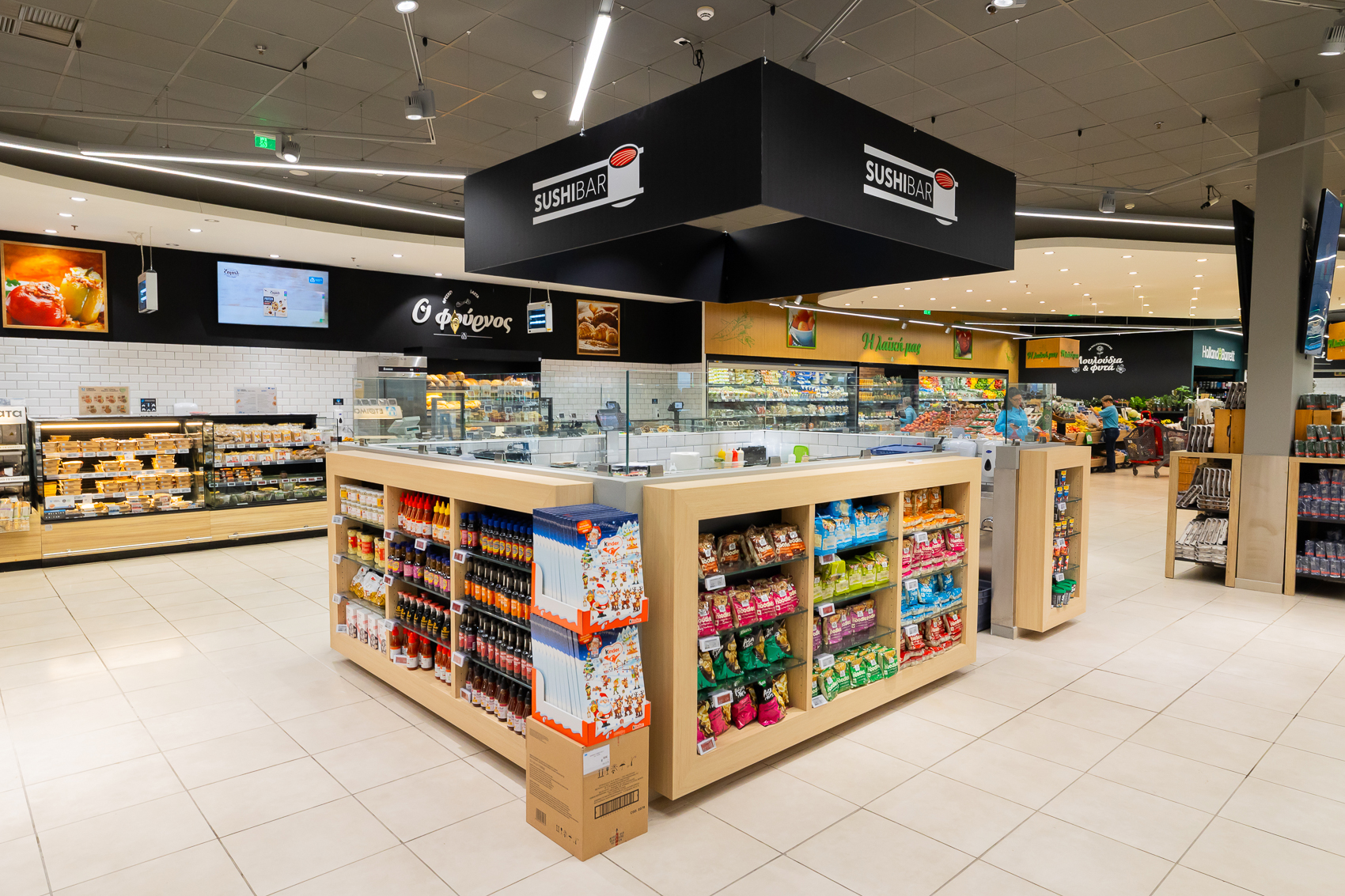Η Ασία στα χέρια σας! Το ολοκαίνουριο Sushi Bar που παρασκευάζει μπροστά στα μάτια σας live sushi τις πρωινές ώρες τα οποία προσφέρει ολόφρεσκα! Το μοναδικό Sushi Bar σε ελληνικό σούπερ μάρκετ έρχεται να καλύψει μια επιθυμία που γεννιόταν κάθε φορά που επισκεπτόμασταν ένα ανάλογο του εξωτερικού! Κάτι μοναδικό για σούπερ μάρκετ στην περιοχή της Θεσσαλονίκης.