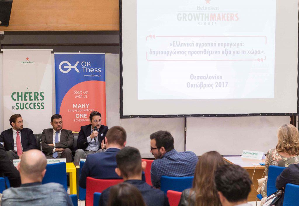 Στη Θεσσαλονίκη ταξίδεψε η πρωτοβουλία της Αθηναϊκής Ζυθοποιίας Heineken Growth Makers δημιουργώντας μία ακόμα επιτυχημένη βραδιά καινοτόμου επιχειρηματικότητας με θέμα «Ελληνική αγροτική παραγωγή: Δημιουργώντας προστιθέμενη αξία για τη χώρα» στη θερμοκοιτίδα ΟΚ!Thess με τη συμμετοχή πολλών νέων, επιχειρηματιών, εκπροσώπων του τοπικού οικοσυστήματος καινοτομίας και επιχειρηματικότητας και φορέων της αγοράς.