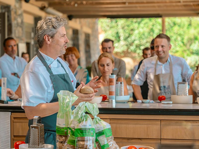 Κατά τη διάρκεια της εκδήλωσης, ο σεφ μίλησε σε εκπροσώπους των μέσων αλλά και σε συνεργάτες της Lidl Ελλάς και του Daios Cove για τη σπουδαία γαστρονομική κληρονομιά της Κρήτης, ενώ παράλληλα έδειξε σε όλους, με κάθε λεπτομέρεια, πώς φτιάχνεται ένας αυθεντικός κρητικός ντάκος. Οι παρευρισκόμενοι έβαλαν τις ποδιές τους, πειραματίστηκαν με τα παξιμάδια, τη φρέσκια τομάτα, το ελαιόλαδο, το τυρί και τη ρίγανη και έφτιαξαν τον δικό τους κρητικό ντάκο με τα ποιοτικά τοπικά προϊόντα της σειράς «Νώμα», καθώς και άλλα προϊόντα της Lidl Ελλάς. Η εμπειρία ολοκληρώθηκε με ένα ξεχωριστό γεύμα 5 πιάτων με την υπογραφή του ιδίου.