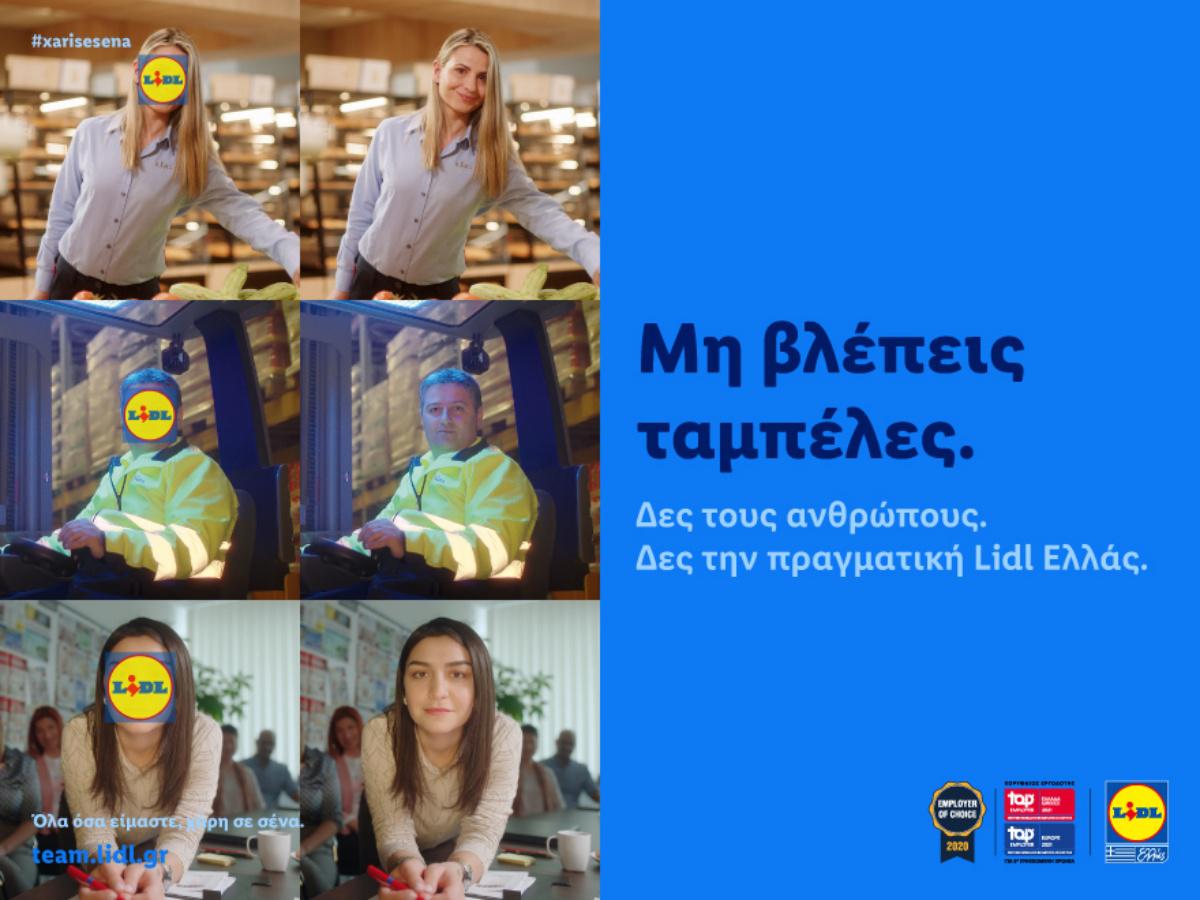 Η Lidl Ελλάς, μέσα από τη νέα επικοινωνιακή καμπάνια, καλεί το κοινό να δει πίσω από τις «ταμπέλες», τους πραγματικούς ανθρώπους της Lidl Ελλάς, έναν προς έναν και μία προς μία. Τους ανθρώπους που εργάζονται μαζί, εξελίσσονται μαζί, ξεπερνούν τον εαυτό τους μαζί και είναι περήφανοι για όσα καταφέρνουν. Και το γιορτάζουν σε κάθε ευκαιρία. Θέλει να δείξει πως, στη Lidl Ελλάς, όλοι ανεξαιρέτως έχουν τα εφόδια που χρειάζονται ώστε να εξελιχθούν, χωρίς διακρίσεις και προκαταλήψεις. Και το προσκαλεί να γνωρίσει τα πρόσωπα πίσω από την πιο δυναμική ομάδα στο λιανικό εμπόριο.