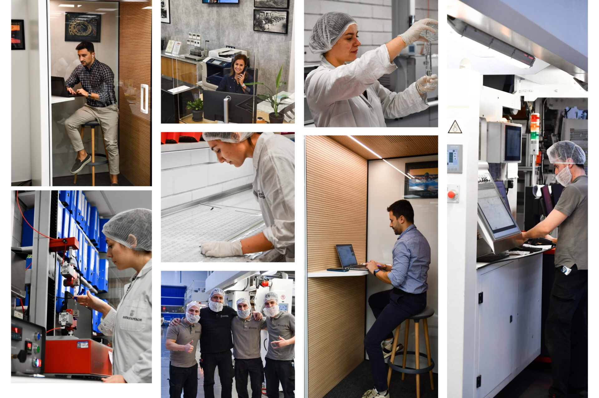 Ολοκληρώνοντας την ξενάγησή μου στα δύο εργοστάσια παραγωγής, τα οποία λειτουργούν ως ανεξάρτητες μονάδες, πέρασα από τα σύγχρονα γραφεία, που βρίσκονται στους πάνω ορόφους, και στη νέα αποθήκη, στις εγκαταστάσεις με το μοντέρνο design, τις άνετες και φωτεινές αίθουσες, την υποδειγματική καθαριότητα από το προαύλιο μέχρι τους χώρους παραγωγής, την διακριτή αρμονία και την ήρεμη ενέργεια, που πλανάται στους χώρους -ακόμα και στην παραγωγή-,την αίθουσα πρωϊνού με snacks για όλη μέρα, το οργανωμένο τμήμα HR για την επίλυση των θεμάτων του προσωπικού, το ιατρείο για παροχή κάθε είδους πρώτης βοήθειας, τις τραπεζαρίες για τις ώρες διαλείμματος, τα booth για ήσυχες συσκέψεις και τα μέτρα ασφάλειας σε κάθε στάδιο παραγωγής, σε μια από τις αίθουσες εκπαίδευσης είχαν μαθήματα ορθοσωμικής με εξωτερικό συνεργάτη φυσικοθεραπευτή, στάθηκα και στον πίνακα ανακοινώσεων και τα εμπνευσμένα αποφθέγματα στους τοίχους των διαδρόμων, ανάμεσα στις παραγωγικές μονάδες και τις βοηθητικές υπηρεσίες, για ενδυνάμωση κι έμπνευση όλη μέρα.