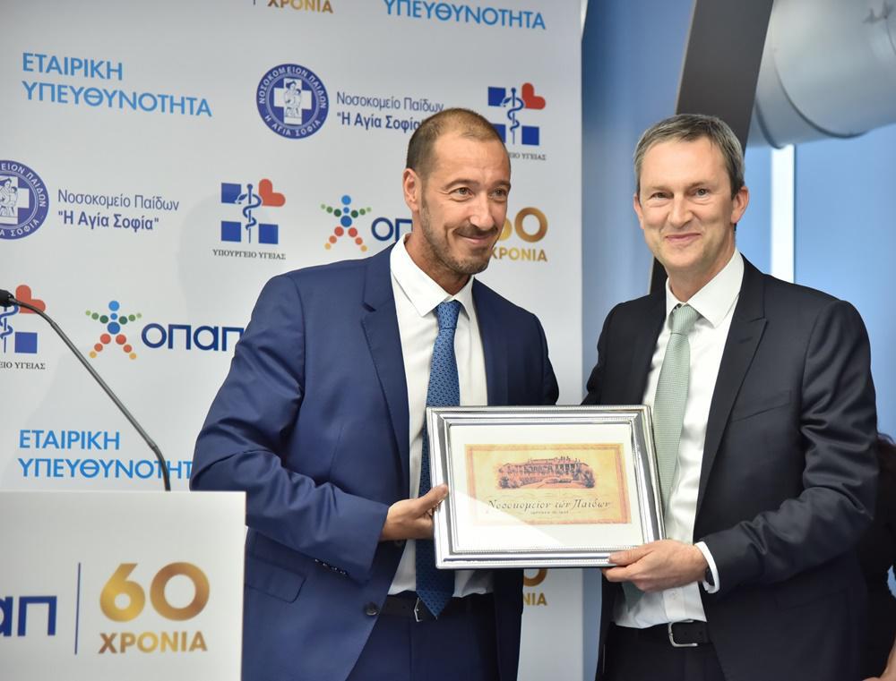 Ο Εκτελεστικός Πρόεδρος του ΟΠΑΠ, κ. Καμίλ Ζίγκλερ, τόνισε: «Εδώ και περισσότερα από 60 χρόνια, η κοινωνική συνεισφορά αποτελεί αναπόσπαστο κομμάτι της ταυτότητας του ΟΠΑΠ. Ως υπεύθυνος και αξιόπιστος εταίρος της ελληνικής κοινωνίας, παρέχουμε υποστήριξη σε πολλούς τομείς, συμπεριλαμβανομένου του ευαίσθητου τομέα της Υγείας. Σήμερα είναι μια σημαντική ημέρα για την μακροπρόθεσμη πρωτοβουλία μας για την πλήρη ανακαίνιση των παιδιατρικών νοσοκομείων «Η Αγία Σοφία» και «Παναγιώτης και Αγλαΐα Κυριακού». Μέσα σε πέντε χρόνια από την έναρξη του έργου, έχουμε ανακαινίσει το 64% των δύο μεγαλύτερων παιδιατρικών νοσοκομείων της Ελλάδας. Από την πλευρά μου, θα ήθελα να ευχαριστήσω όλους όσοι εμπλέκονται σε αυτό το έργο, το οποίο υποστηρίζει έμπρακτα τη νέα γενιά της χώρας».