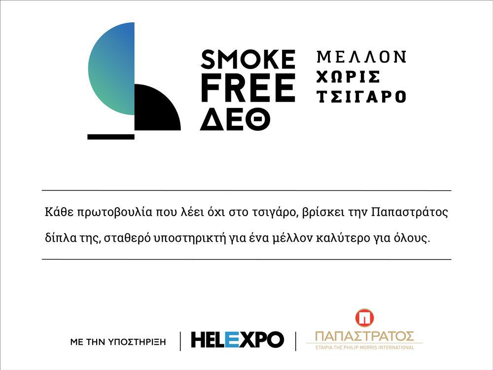 Στην 83η ΔΕΘ, τώρα που ολοένα και περισσότερος κόσμος αντιλαμβάνεται την ανάγκη για διακοπή του καπνίσματος, με σεβασμό στον νόμο και με συνέπεια, η Παπαστράτος έρχεται, με τη γνώση και την εμπειρία της, να πλαισιώσει και να ενισχύσει την πρωτοβουλία της ΔΕΘ. Να φτάσει το μήνυμα του SMOKE FREE σε όσο το δυνατόν περισσότερα αυτιά και να αγγίξει όσο το δυνατόν περισσότερους καπνιστές αλλά και όλους που ζουν γύρω τους! Για ένα μέλλον απαλλαγμένο από τον καπνό του τσιγάρου, για ένα μέλλον που η ΔΕΘ τολμά να κάνει τώρα πραγματικότητα!