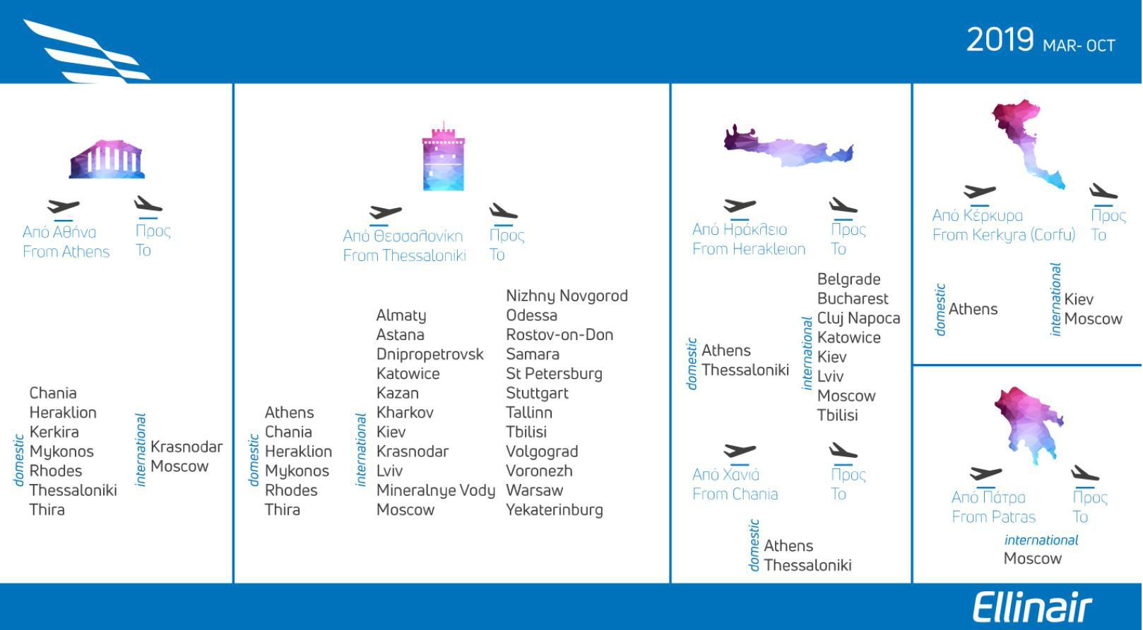Πιο αναλυτικά, οι νέες πτήσεις της Ellinair για το 2019, έχουν ως εξής:
