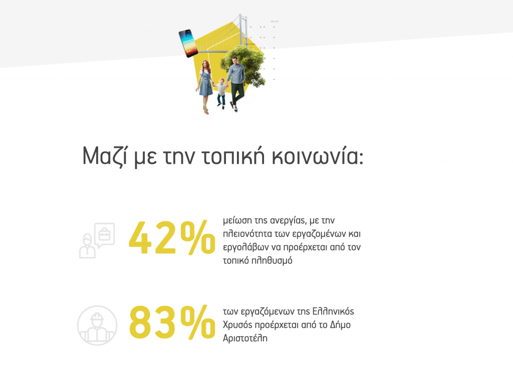 • 1.600 εργαζόμενοι σε μια εποχή που οι θέσεις εργασίας είναι αναπνοή για μια περιοχή • €20 εκ. σε πρωτοβουλίες & δράσεις Εταιρικής Κοινωνικής Ευθύνης • €130 εκ. σε τοπικούς εργολάβους και προμηθευτές • 9 στους 10 εργαζόμενους προέρχονται από τον Δήμο Αριστοτέλη