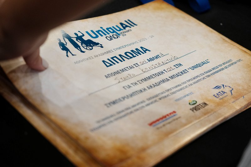 Στο δεύτερο μέρος της τελετής λήξης ο Δημήτρης Παπανικολάου πήρε το λόγο για να ευχαριστήσει τους γονείς για την εμπιστοσύνη τους, καθώς και όλους τους συνεργάτες. Έκανε ιδιαίτερη αναφορά στους πρεσβευτές του τον μοναδικό Έλληνα μέλος του Hall of Fame, Νίκο Γκάλη, και τον πρωταθλητή και δις MVP του NBA, Γιάννη Αντετοκούνμπο, αλλά και τη Λεόντειο Σχολή για την αφιλοκερδή παροχή των εγκαταστάσεών της σε Πατήσια και Νέα Σμύρνη. Στην εκδήλωση παρευρέθηκαν, μάλιστα, ο Γιωργος Περιστέρης περιφερειακός διευθυντής της Διαμαντής Μασούτης ΑΕ και οι Κέλλυ Νίκα Category Manager Arla Brand και Μαρία Γρηγορίου Marketing Manager από την Arla Foods Hellas. Εκ μέρους του UniquAll βραβεύτηκαν οι υποστηρικτές του προγράμματος «Αθλητικές Ακαδημίες Συμπερίληψης» τα σούπερ μάρκετ Μασούτης, η γαλακτοκομική εταιρεία Arla Foods Hellas και τα Ελληνικά Ταχυδρομεία. Παράλληλα, στο προπονητικό επιτελείου του ΑΣ Ροδόπολης προσφέρθηκε μια υπογεγραμμένη από τον Δημήτρη Παπανικολάου εμφάνιση του UniquAll. Επιπλέον, ο Δημήτρης Παπανικολάου τίμησε τις εθελόντριες του προγράμματος με αναμνηστικές πλακέτες. Στη συνέχεια τα παιδιά του UniquAll παρέλαβαν αναμνηστικά μετάλλια και διπλώματα, αλλά και δώρα από τα σούπερ μάρκετ Μασούτης και προϊόντα Arla Protein. Με την ευχή να συναντηθούν όλοι ξανά στα παρκέ τη νέα σεζόν το UniquAll ολοκλήρωσε τις δράσεις του με τον πιο όμορφο τρόπο!