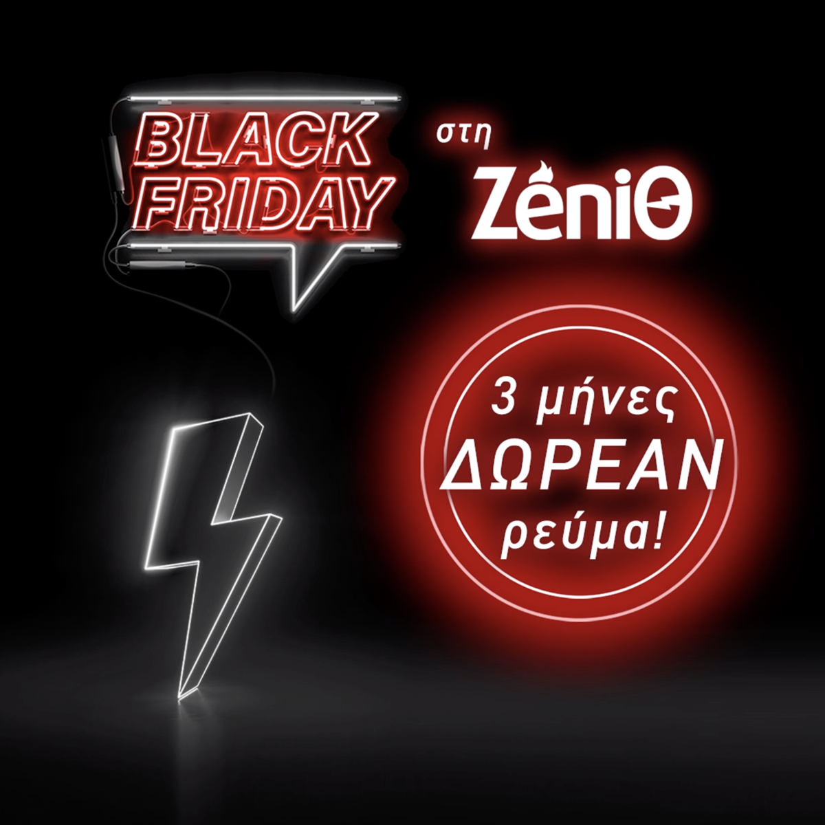 Έτσι, δεν θα μπορούσαμε παρά να συμμετάσχουμε δυναμικά και φέτος σ’ αυτόν το θεσμό της αγοράς, με μια σημαντική προσφορά – 3 μήνες δωρεάν ρεύμα, ανταποδίδοντας την εμπιστοσύνη που λαμβάνουμε από το ελληνικό κοινό εδώ και 20 χρόνια. Kαι φέτος, η ενέργεια της Black Friday φτάνει στο ZeniΘ».