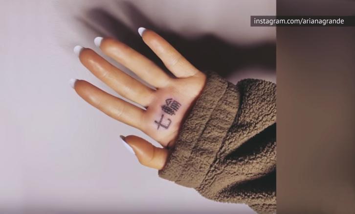 Η 25χρονη Αριάνα θέλησε να κάνει στην παλάμη του χεριού της ένα τατουάζ με γιαπωνέζικα γράμματα που θα παρέπεμπε στο “7 Rings”, τον τίτλο της τελευταίας της επιτυχίας. Η ίδια ανάρτησε τη φωτογραφία του αποτελέσματος στο Instagram πριν την εξαφανίσει γρήγορα.