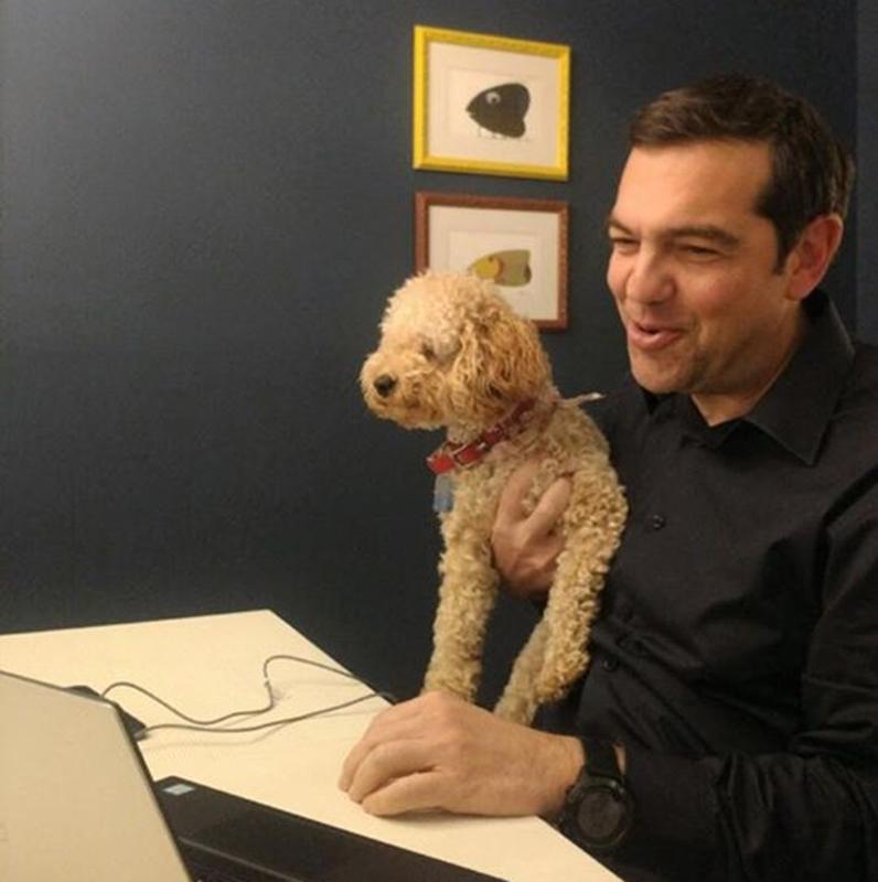 Η ανάρτηση συνοδεύεται από τις φωτογραφίες που ο Αλέξης Τσίπρας παίζει με την σκυλίτσα Κάρμεν.