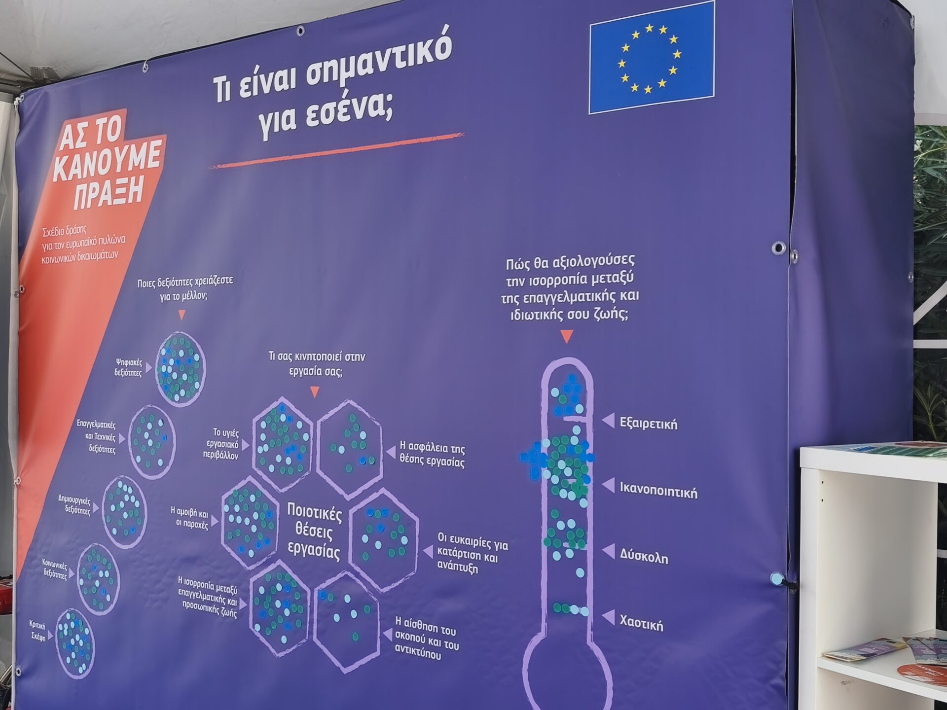 Η δράση “Ας το Κάνουμε Πράξη” της Ευρωπαϊκής Επιτροπής. Ξεκίνησε έχει ως στόχο να ευαισθητοποιήσει τους πολίτες για τα εργασιακά και κοινωνικά τους δικαιώματα και να εξηγήσει πώς η Επιτροπή φροντίζει για την προάσπισή τους. Φέτος, συγκεκριμένα, η δράση επικεντρώνεται σε ζητήματα όπως οι ποιοτικές θέσεις εργασίας, η ισορροπία μεταξύ επαγγελματικής και προσωπικής ζωής και οι δεξιότητες των πολιτών.