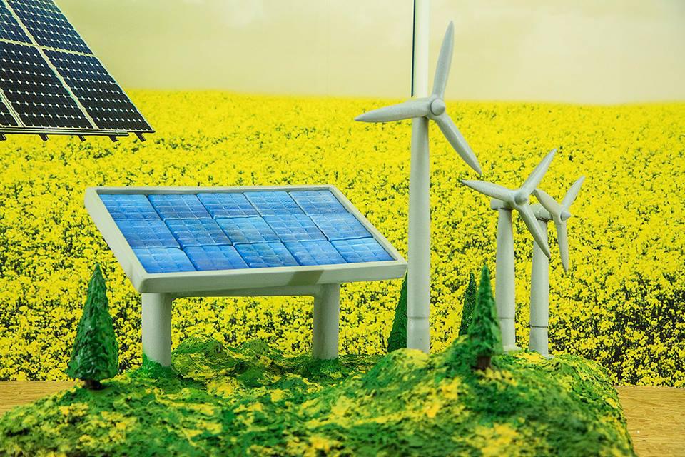 Η Κλάουντια προτιμά ένα γλυπτό για τις ανανεώσιμες πηγές ενέργειας – ένα μοντέλο που συνδυάζει ένα ηλιακό πάνελ και μία ανεμογεννήτρια. «Ένα μήνυμα ελπίδας», δηλώνει.