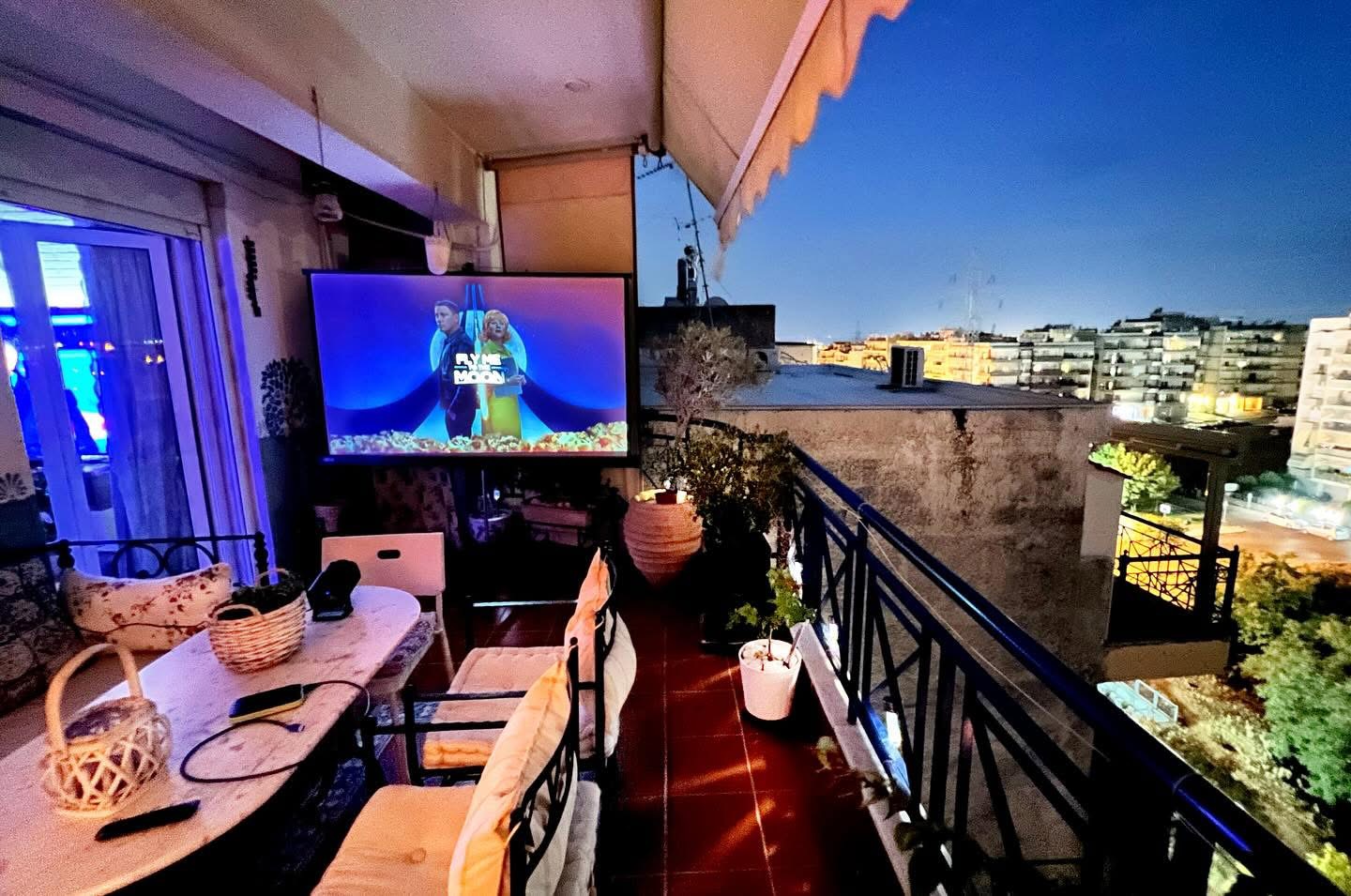 Δεν πήρα την άδεια από τους γείτονές μου, είπα: “εγώ θα το ξεκινήσω και μακάρι να έρχονται μαζί μου επάνω να βλέπουμε ταινίες.” μέχρι στιγμής δεν έχω κάποιο πρόβλημα. Βλέπω ταινίες με χαμηλό ήχο για να μην ενοχλώ. Είναι λίγο δύσκολο να κάνεις προβολές σε μπαλκόνια και ταράτσες, ο καθένας μπορεί να σου κάνει παρατήρηση. Όμως, η μυσταγωγία της προβολής στην ταράτσα είναι μαγική, αυτό που νιώθω εκεί πάνω δεν το έχω νιώσει πουθενά αλλού, ούτε καν στα θερινά που πάω τακτικά. Βλέπεις όλο το αστικό τοπίο, την πόλη φωτισμένη, όλος ο ουρανός ανοιχτός από πάνω, μαγεία. Το spor του homecinema παλιότερα ήταν πανάκριβο, όταν ξεκίνησα εγώ οι προτζέκτορες κόστιζαν 5-6 χιλιάδες δραχμές, πλέον αγοράζεις με 200-300 ευρώ έναν προτζέκτορα τον οποίο πριν 6-7 χρόνια θα τον πλήρωνες 2 με 3 χιλιάρικα, δεν χρειάζεται να έχεις τρελές απαιτήσεις στην ποιότητα πρόκειται για προβολή στο σπίτι. Εγώ έχω όλες τις συνδρομητικές πλατφόρμες αλλά και στον σκληρό μου αυτή την στιγμή μπορεί να έχω 6-7 χιλιάδες ταινίες. Αγαπώ πολύ τα αφιερώματα, στο θερινό αυτοσχέδιο σινεμά – λέσχη, το περασμένο καλοκαίρι είχαμε αφιέρωμα στον Χίτσκοκ, όλες από dvd, τις ταινίες που προβάλλω τις διαλέγω από την παρέα που θα μαζευτεί και τις προτιμήσεις τους. Μακάρι κι άλλοι άνθρωποι να εκμεταλλευτούν την ταράτσα τους και να νιώσουν αυτή την μαγεία, από τα φώτα της πόλης και τις πολυκατοικίες που την περικλείουν, τότε θα είχε νόημα η αστική ομορφιά.”