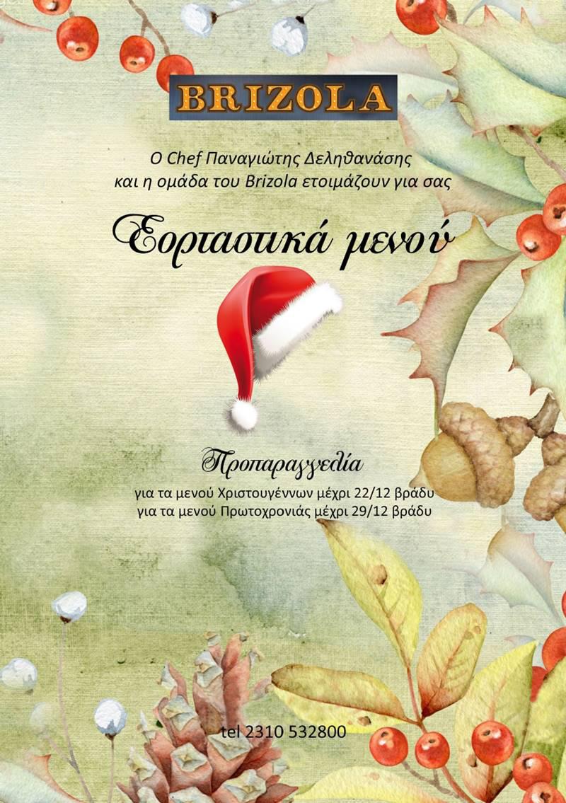 Εμείς το μόνο που έχουμε να κάνουμε είναι να φορέσουμε τα καλά μας και να στρώσουμε ένα γιορτινό τραπέζι. Όπου και αν μένουμε στη Θεσσαλονίκη, κοντά ή μακριά στη Brizola ένα ισοθερμικό κουτί θα έρθει με ταξί στην πόρτα μας με το φαγητό λαχταριστό, ζεστό και με την γνωστή σφραγίδα της Brizola που λατρεύουμε.