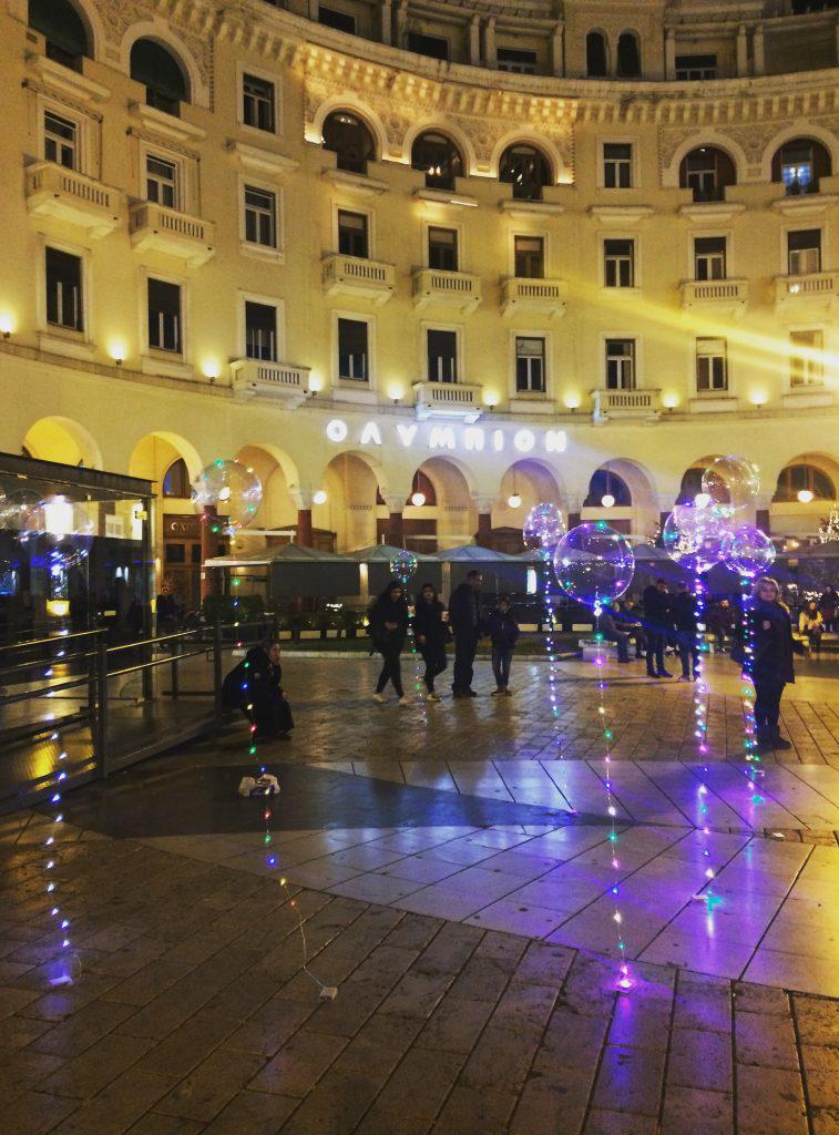 Στη γραμμή 3, ανέβηκαν χέρι-χέρι. Κάθισαν και της έτριβε τα χέρια στα δικά του για να τα ζεστάνει, φορούσαν παρόμοιους σκούφους. Της είχε αγοράσει ένα φωτεινό μπαλόνι από εκείνα που κατέκλυσαν την Πλατεία Αριστοτέλους.