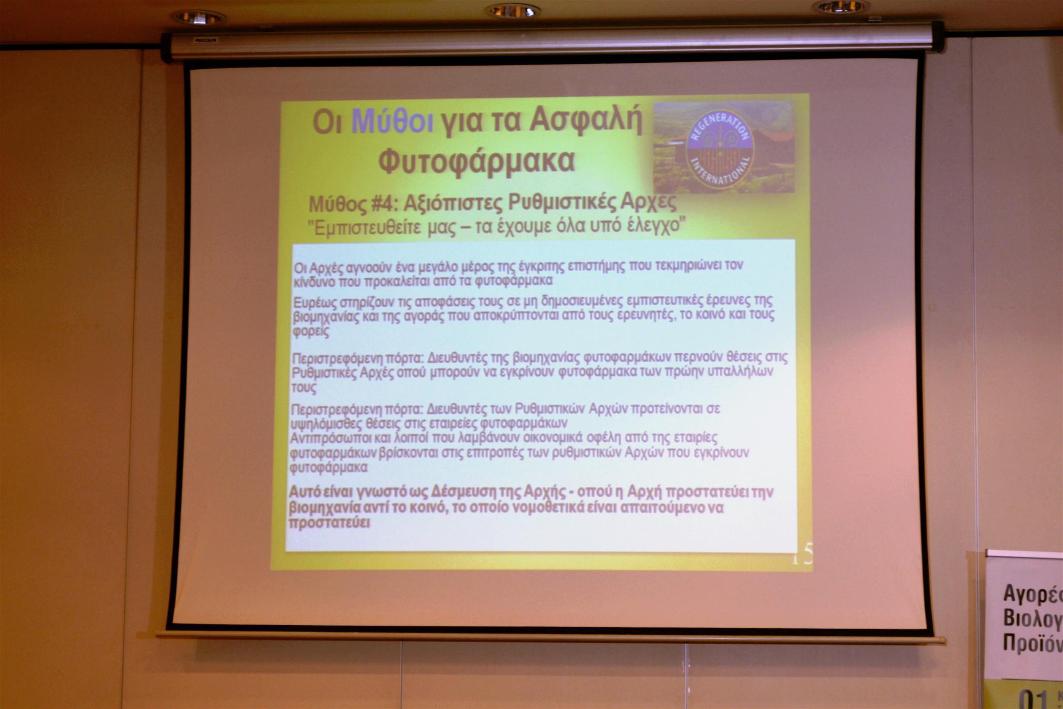 Με μεγάλη επιτυχία και προσέλευση κόσμου, πραγματοποιήθηκε η εκδήλωση της Ένωσης Αγροτών Βιοκαλλιεργητών Βόρειας Ελλάδας «Οι μύθοι περί των ασφαλών φυτοφαρμάκων», στο πλαίσιο της επίσκεψης στην Ελλάδα του συγγραφέα του ομώνυμου βιβλίου, του Αυστραλού βιοκαλλιεργητή και πρώην προέδρου της IFOAM-Organics International, Andre Leu.
