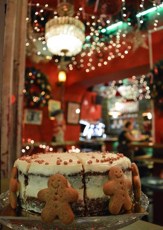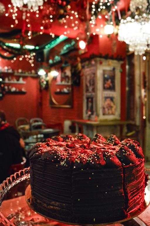 Στις υπέροχες κρυσταλλιέρες λαχταριστά κέικ καρότου, σοκολάτας και brownies σε καλούν να τα απολαύσεις, ενώ όσο νυχτώνει τα μοναδικά γιορτινά κοκτέιλ σε ταξιδεύουν και σε προκαλούν να χορέψεις. Άλλωστε είναι γνωστό πως τα καλύτερα πάρτι τα μεσημέρια της παραμονής και ανήμερα Χριστούγεννα και Πρωτοχρονιά εδώ και δεκαετίες γίνονταν και γίνονται σε αυτό το μπαρ.