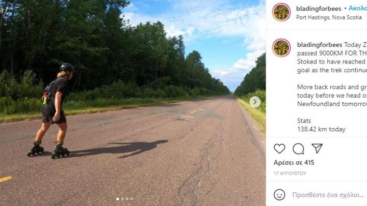 Καναδός φόρεσε τα in-line skates του και διένυσε σε 90 μέρες 9.883 χιλιόμετρα διασχίζοντας τον Καναδά για να ευαισθητοποιήσει για την προστασία των μελισσών και να καταρρίψει ρεκόρ Γκίνες.