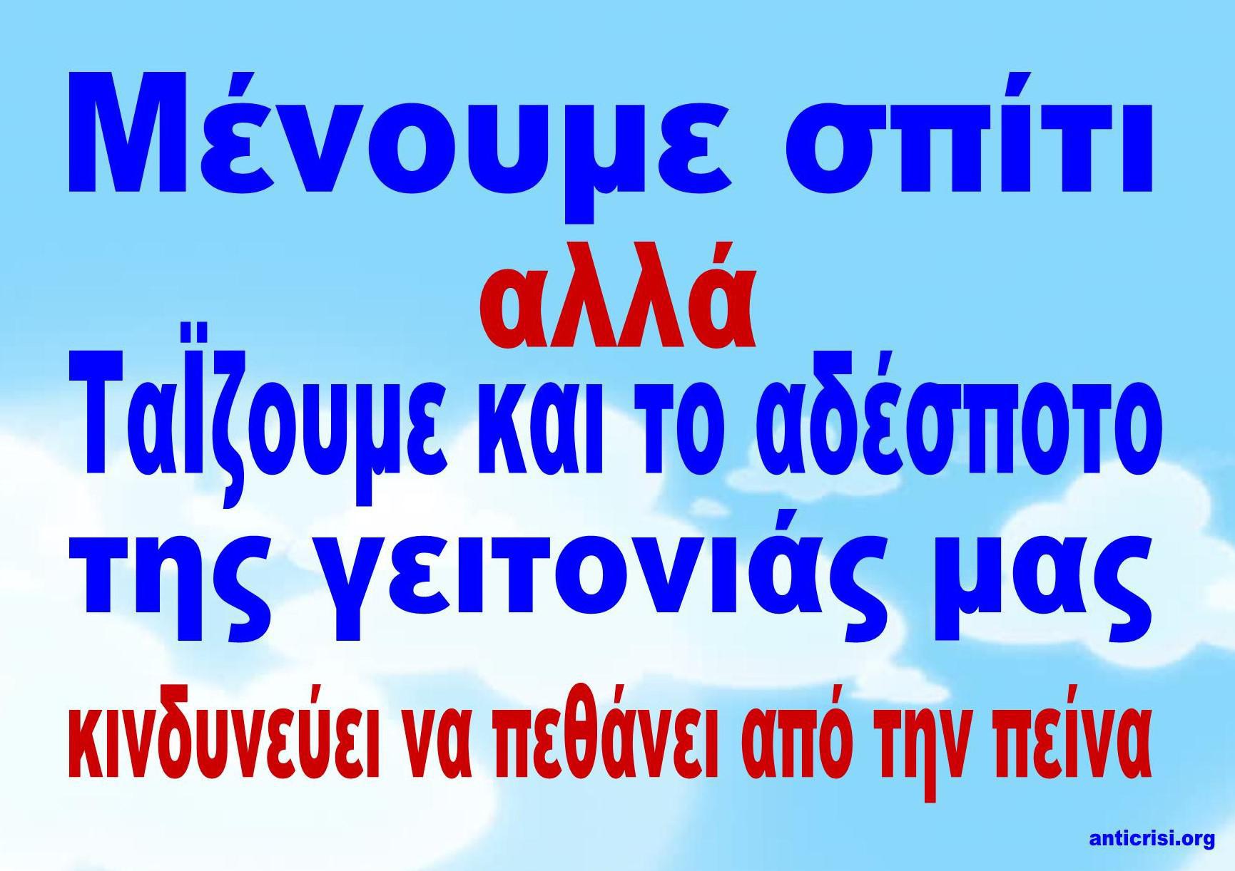 Η Κοινωνική Οργάνωση Αντικρίση κάνει έκκληση προς όλους τους κατοίκους της χώρας να ταΐζουν τα όσα περισσότερα αδέσποτα ζώα μπορούν, διότι ειδικά στις αστικές ζώνες μετά τα πρωτοφανή αλλά απαραίτητα για τη διασφάλιση της Δημόσιας υγείας μέτρα που επέβαλε η Κυβέρνηση, τα αδέσποτα κινδυνεύουν να πεθάνουν από την πείνα αφού τα περισσότερα σιτίζονταν από φιλόζωους επαγγελματίες ή εργαζόμενους που σήμερα λόγω του Κοροναϊού παραμένουν μακριά από τις εργασίες τους.