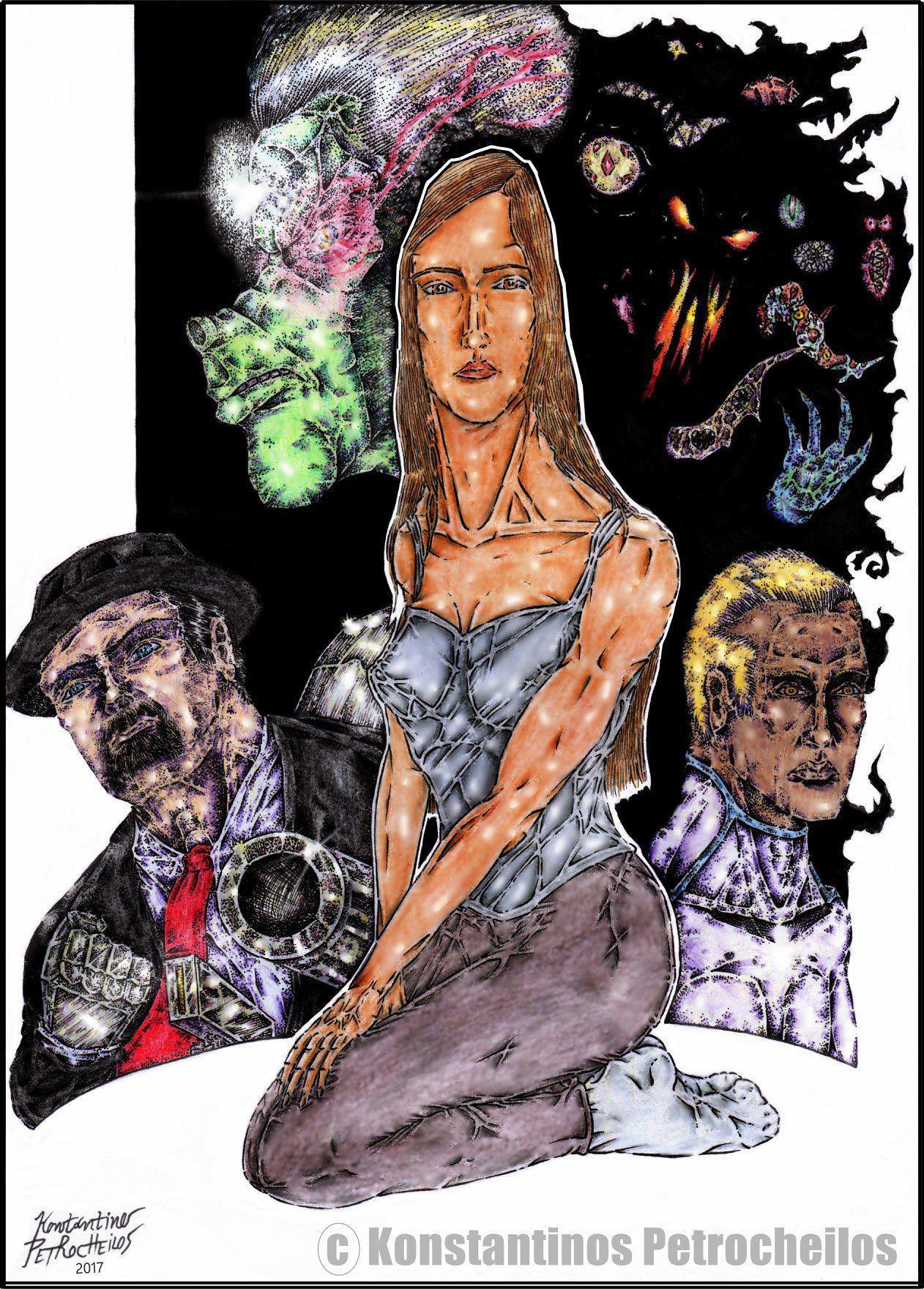 Όσον αφορά το χώρο των ‘Καλών Τεχνών’, στις οποίες δυστυχώς, στην περίπτωση της Ελλάδας, δε συμπεριλαμβάνεται το κόμικ, καθώς φοιτούσα στη Σχολή του Α.Π.Θ., παρατήρησα ότι από κάθε ρεύμα και σχολή σκέψης μπορείς να πάρεις και από κάτι. Αναπόφευκτα όμως, το ενδιαφέρον του νέου δημιουργού, καθώς ανακαλύπτει την προσωπική του καλλιτεχνική έκφραση και κατά συνέπεια τον ίδιο του τον εαυτό, θα στραφεί κάποια στιγμή προς εκείνους τους δημιουργούς, των οποίων οι ανησυχίες και έργα, συνάδουν σε έναν επαρκή βαθμό με το δικό του τρόπο σκέψης. Αυτό βέβαια, καθώς ο δημιουργός εξελίσσεται καλλιτεχνικά, μπορεί να αλλάξει, και οι αρχικές προτιμήσεις να αντικατασταθούν από άλλες, αν όχι παραπλήσιες, ίσως και εντελώς διαφορετικές. Όπως και να έχει, στην περίπτωσή μου, από το χώρο της Ζωγραφικής, κύρια ενδιαφέροντά μου συνεχίζουν να παραμένουν οι Σουρεαλιστές όπως ο Ρενέ Μαγκρίτ (René Magritte) και οι Συμβολιστές όπως ο Γουίλιαμ Μπλέηκ (William Blake). Έχω όμως και επιρροές από ορισμένα είδη ιστοριών της λογοτεχνίας και συγκεκριμένα από συγγραφείς όπως Γκαίτε (Goethe), Μπάροους (Edgar Rice Burroughs), Ρόμπερτ Στήβενσον (Robert Louis Stevenson), Λόρδος Λύττον (Edward Bulwer-Lytton), Πόε (Edgar Allan Poe), Λάβκραφτ (H.P.Lovecraft), Σέλλεϋ (Mary Shelley), Στόκερ (Bram Stoker), Φίλιπ Ντικ (Philip K. Dick). Αλλά και από το χώρο της επιστήμης έχω αντλήσει έμπνευση, κυρίως από περιπτώσεις όπως του Τέσλα (Nikola Tesla) και του Καρλ Γιούνγκ (Carl Jung). Tέλος, δε θα μπορούσα να μην αναφερθώ στο χώρο της Ένατης Τέχνης, από όπου οι επιρροές μου προέρχονται κυρίως από Ευρώπη και Αμερική, όπου οι δημιουργοί είναι ή ήταν είτε συγγραφείς, είτε εικονογράφοι ή και τα δύο. Από Ευρώπη θα ανέφερα για παράδειγμα τους Ένκι Μπίλαλ (Enki Bilal), Ζαν Ζιρό γνωστός και ως Μοέμπιους (Jean Giraud/Moebius), Τζοντορόφσκι (Alejandro Jodorowsky), Μπάρυ Γουίνδσορ Σμιθ (Barry Windsor-Smith), Μπράιαν Μπόλλαντ (Brian Bolland), ‘Aλαν Μουρ (Alan Moore), Νέηλ Γκάινμαν (Neil Gainman), ενώ από Αμερική δημιουργούς όπως οι Φλέτσερ Χανκς (Fletcher Hanks, Sr.), Φρανκ Φραζέτα (Frank Frazetta), Τζακ Κίρμπυ (Jack Kirby), Νηλ Άνταμς (Neal Adams), Μπέρνι Ράιτσον (Bernie Wrightson), Τζέημς Ο Μπαρ (James O’ Barr), Κέλεϋ Τζόουνς (Kelley Jones), Φρανκ Μίλλερ (Frank Miller), Ήθαν Βαν Σκάιβερ (Ethan Van Sciver), Τζιμ Λη (Jim Lee), Μάικλ Τέρνερ (Michael Turner), Ντέηλ Κέον (Dale Keown), Σαμ Κηθ (Sam Kieth), Γκρεγκ Καπούλλο (Greg Capullo), Τζο Κεσάντα (Joe Quesada), Μινιόλα (Mike Mignola), Βίτζιλ (Tim Vigil), Ματ Βάγκνερ (Matt Vagner), Τιμ Τάιλερ (Tim Tyler), Κάιλ Χοτζ (Kyle Hotz), Λίνσνερ (Michael Linsner), Έβερετ Χάρτσο (Everette Hartsoe). Ειλικρινά όμως, υπάρχουν τόσοι πολλοί ακόμα που με τον έναν ή τον άλλον τρόπο έχουν επηρεάσει το συγγραφικό και το καλλιτεχνικό κομμάτι της δουλειάς μου.