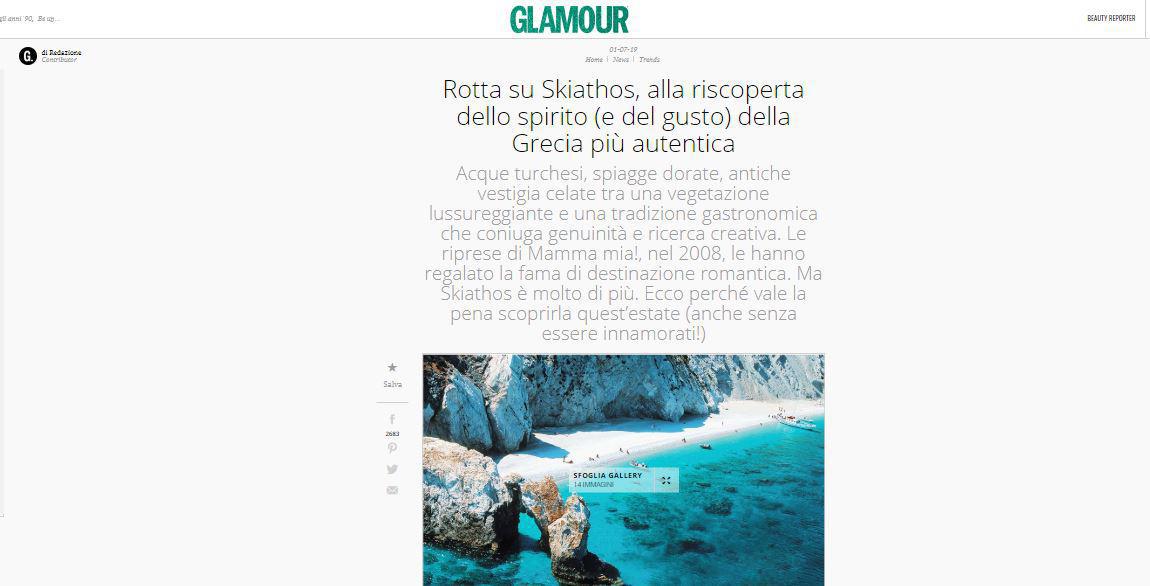 Όπως αναφέρεται σε σχετική ανακοίνωση, «αρχικά επισκέφτηκαν τη Σκιάθο δύο μοντέλα-παρουσιάστριες της ιταλικής τηλεόρασης, η Eleonora Pedron και η Melita Toniolo, από τις 10/06 έως και τις 13/06. Ξεναγήθηκαν στην πόλη της Σκιάθου και φωτογραφήθηκαν για λογαριασμό του ιταλικού περιοδικού «CHI». Το αναγνωστικό κοινό του συγκεκριμένου εβδομαδιαίου περιοδικού αγγίζει τα 150.000 άτομα, ενώ η Melita Toniolo και η Eleonora Pedron έχουν 1.000.000 και 300.000 followers στα social media αντίστοιχα και οι οποίες μέχρι και σήμερα ανεβάζουν φωτογραφίες στους προσωπικούς τους λογαριασμούς από την επίσκεψή τους στη Σκιάθο».
