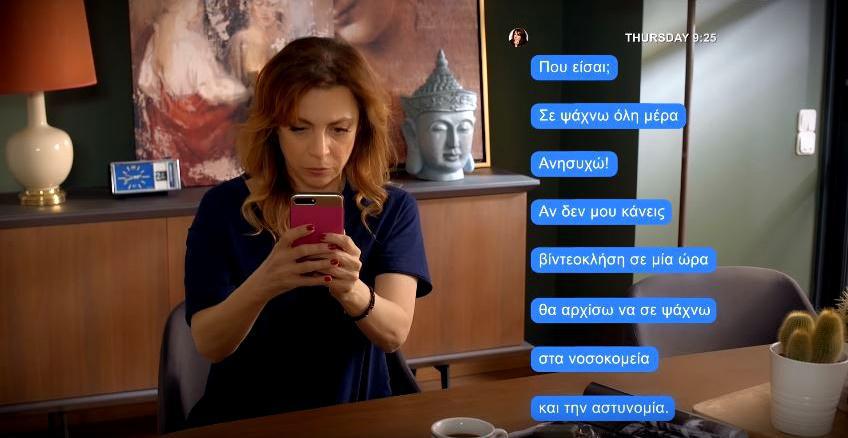 Η Δήμητρα στέλνει ανήσυχη μηνύματα στο messenger του Θοδωρή, ενώ δεν λείπουν και οι βιντεοκλήσεις, προφανές σημάδι ότι το ζεύγος έχει περάσει για τα καλά στην ψηφιακή εποχή, κι ας το είχαμε αφήσει εμείς στην ξεκάθαρα αναλογική του φάση, τότε που η πρωταγωνίστρια μιλούσε ασταμάτητα στο σταθερό με τη μητέρα και την κολλητή της στην άλλη άκρη της τηλεφωνικής γραμμής.